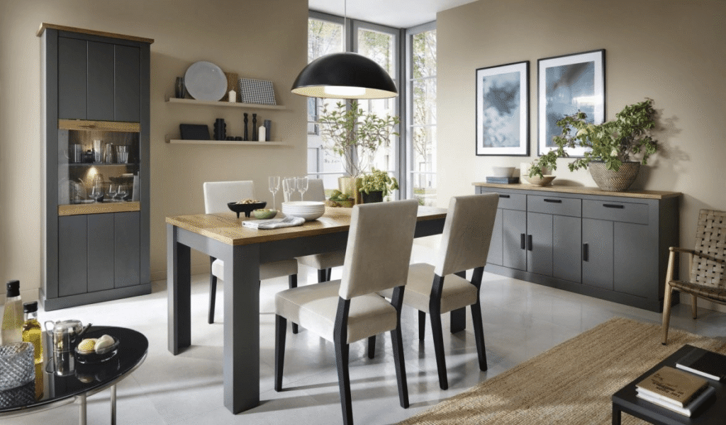 Spójna kolorystyka stołu i krzeseł to fundament udanej aranżacji. Ważne jest, aby meble współgrały ze sobą i z całym wnętrzem, tworząc elegancką, ale przytulną przestrzeń. Jeśli Twój stół ma jasne, drewniane wykończenie, wybierz krzesła w podobnym odcieniu lub z tapicerką w neutralnych barwach, takich jak szarość czy beż. Takie zestawienie nada wnętrzu lekkości i sprawdzi się zarówno w codziennych aranżacjach, jak i podczas Wigilii.
