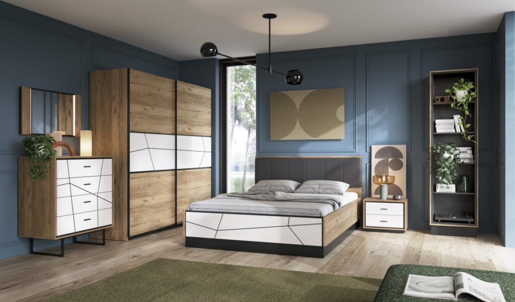 Jeśli urządzasz sypialnię na bazie gotowej kolekcji, wybór łóżka staje się znacznie prostszy. Meble z jednej linii zachowują spójność kolorystyczną i stylistyczną, co przekłada się na wrażenie ładu i harmonii. Taka konsekwencja nie tylko dobrze wygląda, ale także wpływa na komfort codziennego funkcjonowania — w uporządkowanej przestrzeni łatwiej o relaks i regenerację.
