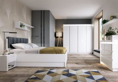 Kolekcja Brolo jest doskonałym przykładem nietuzinkowych mebli o funkcjonalnych rozwiązaniach i nowoczesnym wyglądzie. Fronty posiadają frezowane, geometryczne kształty odróżniające się czarną kolorystyką od białej powierzchni. Takie rozwiązanie sprawia, że kolekcja Brolo to designerskie meble, na które patrzy się z podziwem. Komoda na metalowym stelażu, stół z prowadnicą ułatwiającą rozkładanie, czy też oświetlenie LED, dodadzą szyku oraz doskonale wpisują się w tegoroczne trendy.