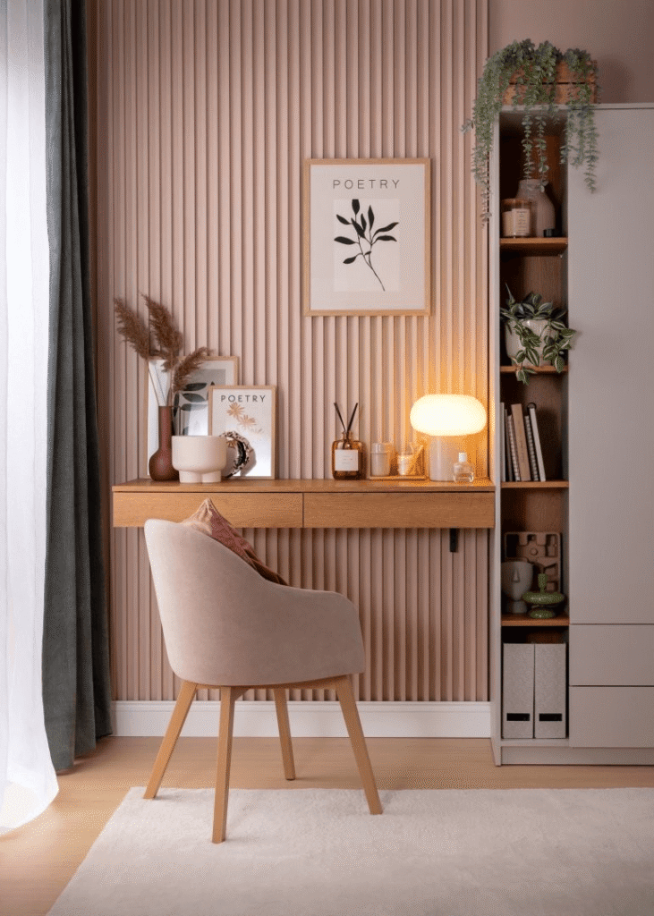 Jeśli chodzi o kącik do nauki, idealnie jeśli w pokoju znajdą się dwa osobne biurka – tak, aby każde dziecko miało własne miejsce do odrabiania lekcji, rysowania czy korzystania z komputera. Idealnym miejscem na ustawienie biurek jest przestrzeń pod oknem, gdzie naturalne światło ułatwia pracę i zmniejsza zmęczenie oczu. Dla większego komfortu warto pomyśleć o przedzieleniu biurek dodatkową szafką lub regałem, co zapewni każdemu dziecku własną przestrzeń i zminimalizuje wzajemne rozpraszanie się. To rozwiązanie szczególnie dobrze sprawdzi się, gdy biurka są ustawione w jednej linii, tworząc ergonomiczny i uporządkowany kącik do nauki.