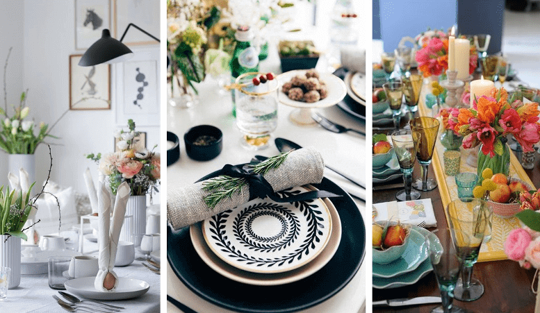 Inspiracje zaczerpnięte z natury to nie tylko wnętrzarski hit 2019 rok, ale również doskonały motyw do wykorzystania przy dekorowaniu świątecznego stołu. Niezwykle istotny jest tutaj odpowiedni dobór materiałów oraz kolorów. Na naturalnym stole powinny zagościć jasne i ciepłe odcienie zieleni (np. bardzo modny kolor szałwii), błękitu, jak również szarości oraz beże. Jeśli chodzi o same dodatki to warto wykorzystać elementy wykonane z drewna, wikliny czy juty. Na naturalnym stole wielkanocnym doskonale będzie prezentować się np. obrus, czy bieżnik wykonany z lnu albo bawełny. Obowiązkowo muszą pojawić się również naturalne rośliny – mogą to być klasyczne żonkile, tulipany czy bazie ułożone w przezroczystym wazonie lub słoju. Do tego trendu doskonale sprawdzą się również proste, florystyczne dekoracje z użyciem mchu, rzeżuchy czy młodego zboża w połączeniu z drewnem.