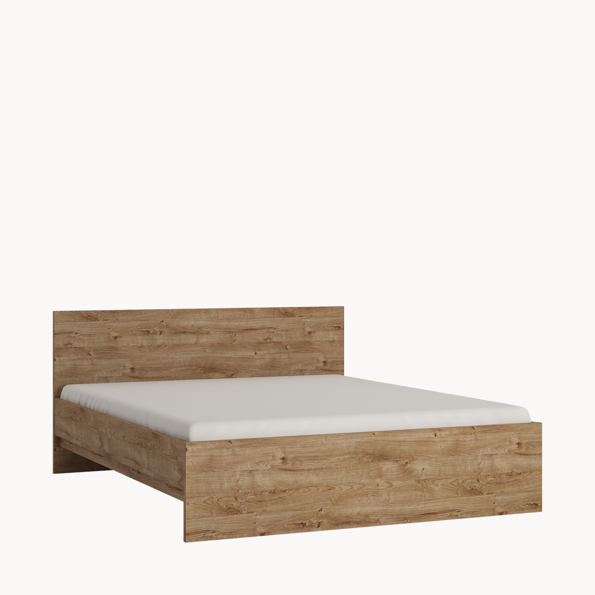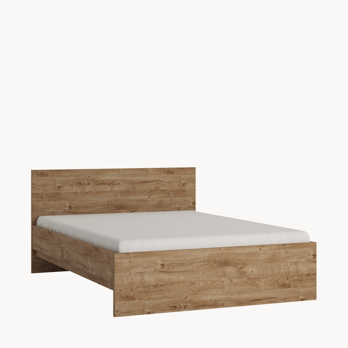 Doppelbett, 140x200cm, Hochstellrahmen, Dekor helles Holz, weißer Glanz