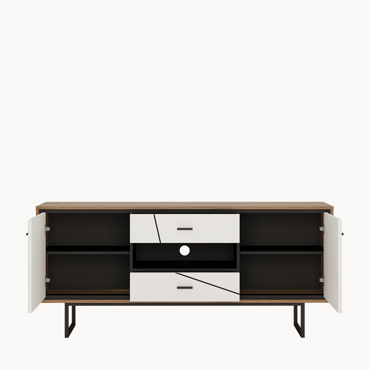 Usage guidelines: The furniture should be used in accordance with its intended purpose - in enclosed rooms that are protected against weather conditions. It is not recommended to place hot objects on the furniture. To clean the surface, a slightly damp, soft cloth should be used, followed by drying it. In the case of more severe stains, mild cleaning agents designed for cleaning furniture can be used.