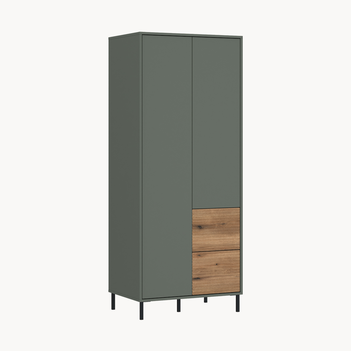 Two-door wardrobe, cashmere, with grooves and a metal handle