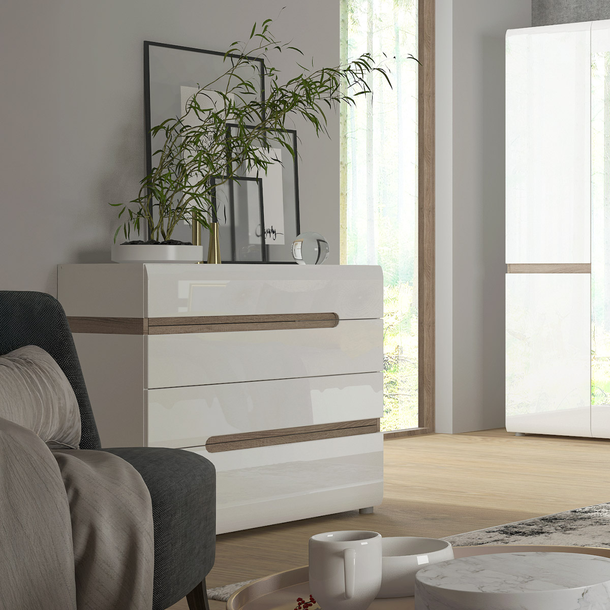 Zasady użytkowania: Mebel powinien być użytkowany zgodnie z jego przeznaczeniem - w pomieszczeniach zamkniętych i zabezpieczonych przed działaniem warunków atmosferycznych. Nie zaleca się umieszczania na meblu gorących przedmiotów. Do czyszczenia powierzchni należy stosować lekko wilgotną, miękką tkaninę, następnie wytrzeć do sucha. W przypadku powstania silniejszych zabrudzeń można użyć łagodnych środków myjących przeznaczonych do czyszczenia mebli.