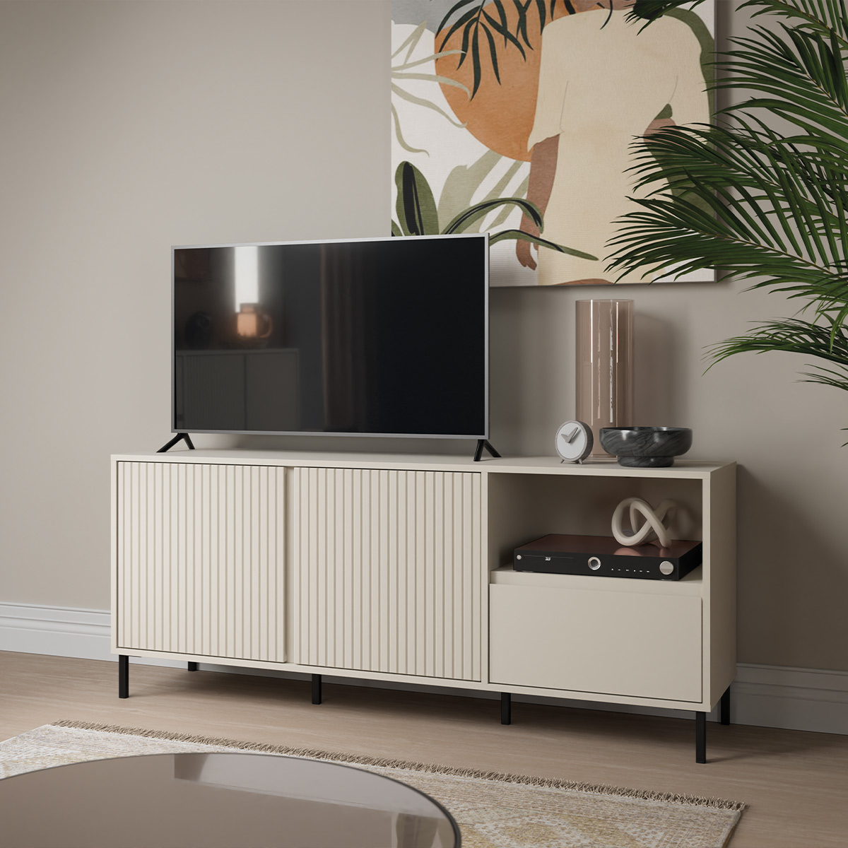 Komoda pod TV z szufladą, kaszmir, ryflowane fronty