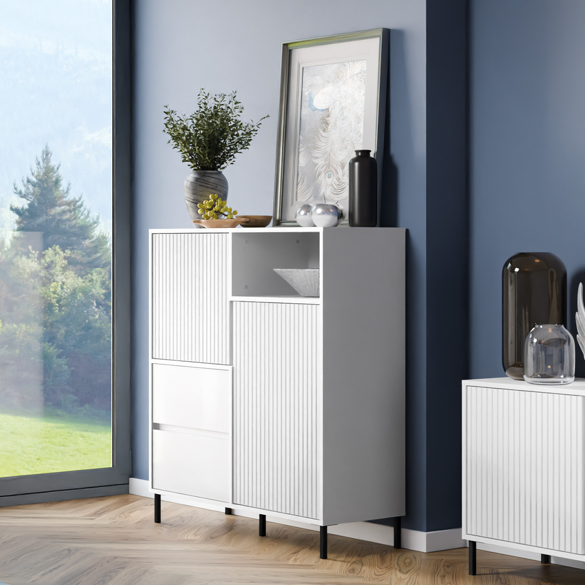 Bezpieczeństwo: Mebel należy trwale zamocować do ściany, aby uniknąć ryzyka związanego z przewróceniem się mebla lub spadnięciem elementu wiszącego. W paczce znajdują się elementy mocujące odpowiednie wyłącznie do ścian betonowych lub z pełnej cegły. Jeśli Twoja ściana wykonana jest z innego materiału lub nie masz pewności co do budowy tej ściany, skonsultuj się w kwestii montażu ze specjalistą.