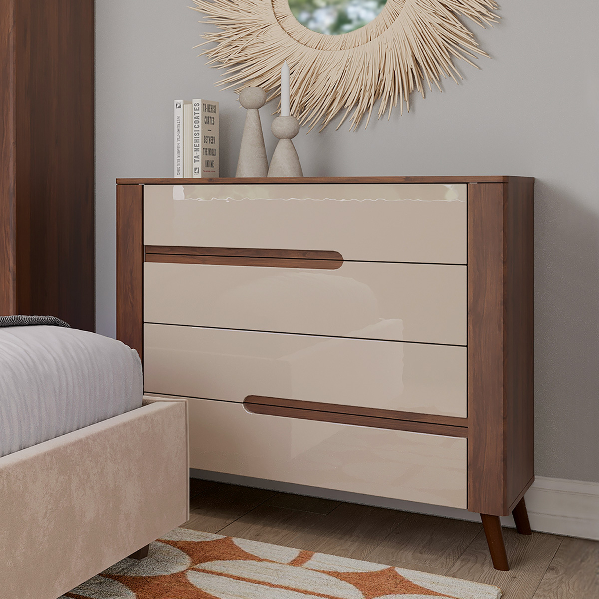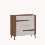 Komoda z szufladami, drewniane nóżki, dekor ciemny orzech/ beż