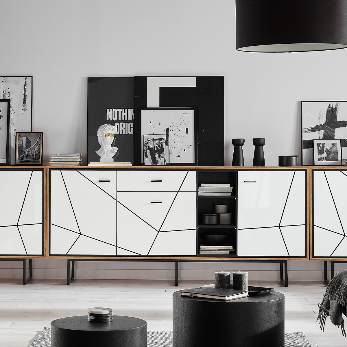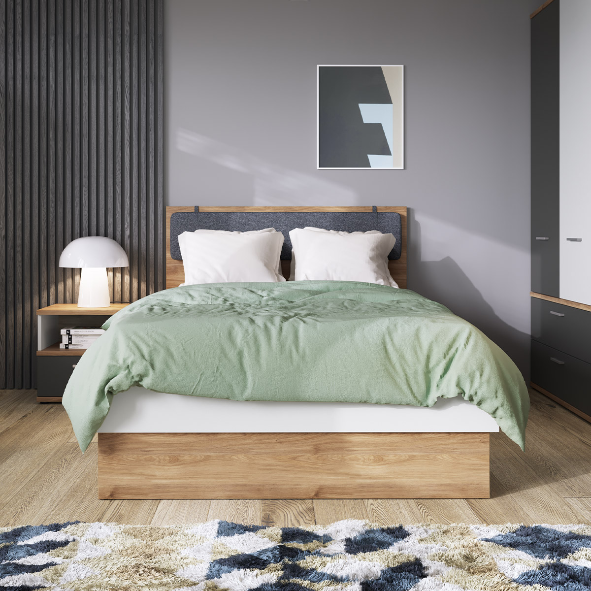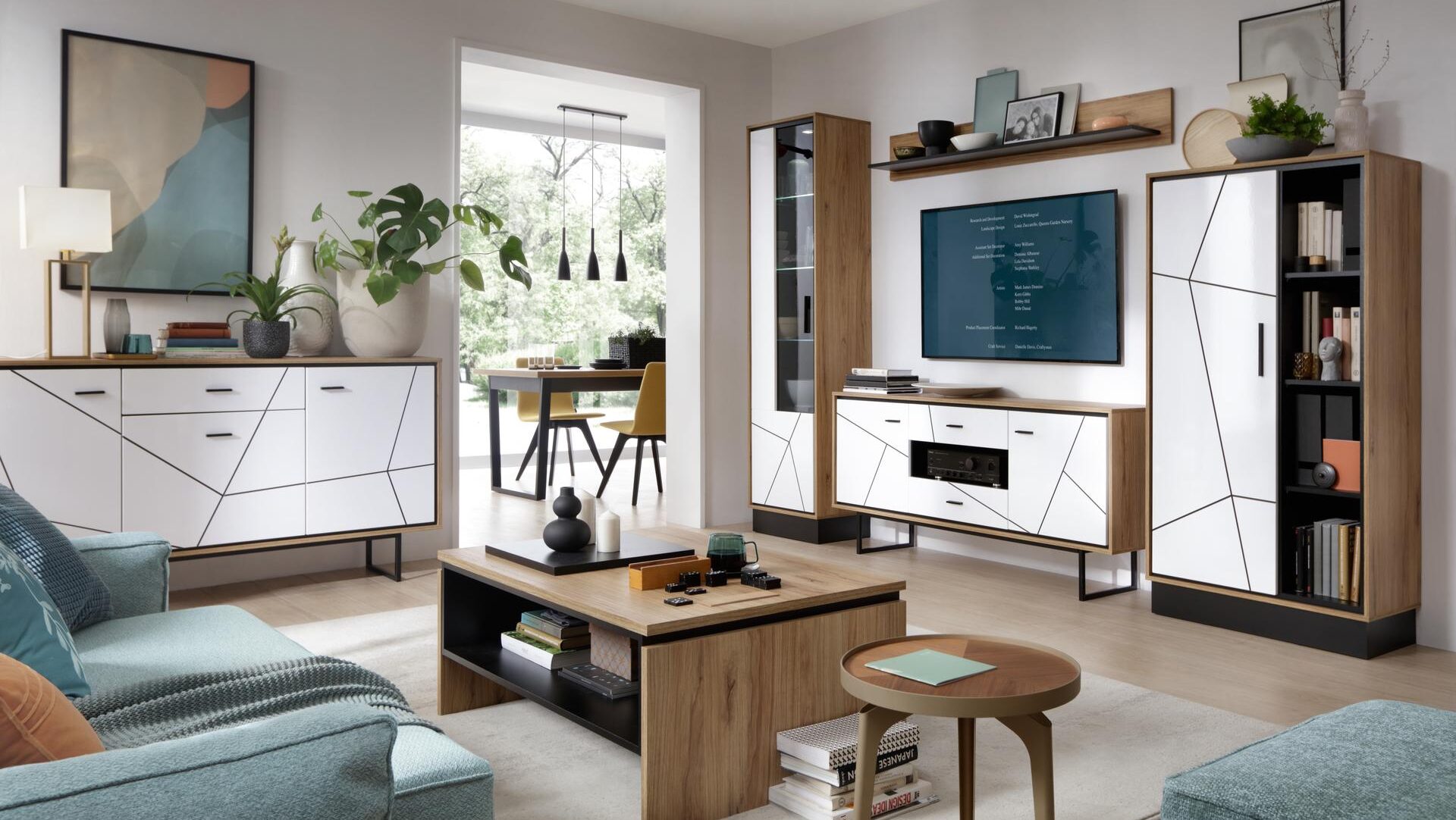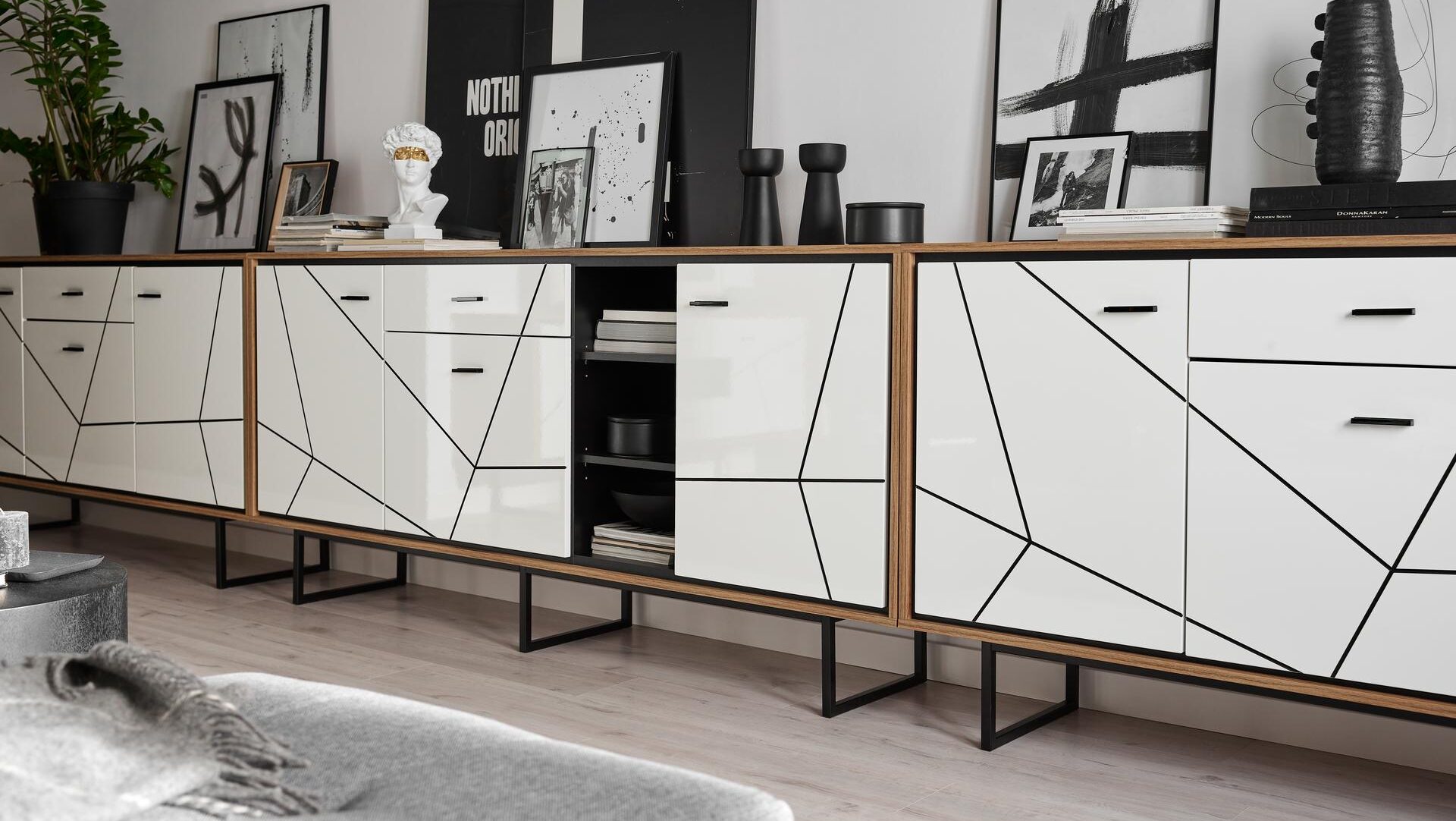 Kolekcja mebli Brolo stanowi wejście do świata unikalnego designu oraz ciepłej atmosfery. Idealnie komponuje się z odważnym, zielonym tłem, jednak nic nie stoi na przeszkodzie, by łączyć ją także z odcieniami szarości. Komoda osadzona na stylowym metalowym stelażu, stół z synchroniczną prowadnicą umożliwiającą łatwe rozkładanie oraz opcjonalne oświetlenie LED, dodają wnętrzu nie tylko elegancji, ale także nowoczesnego charakteru.