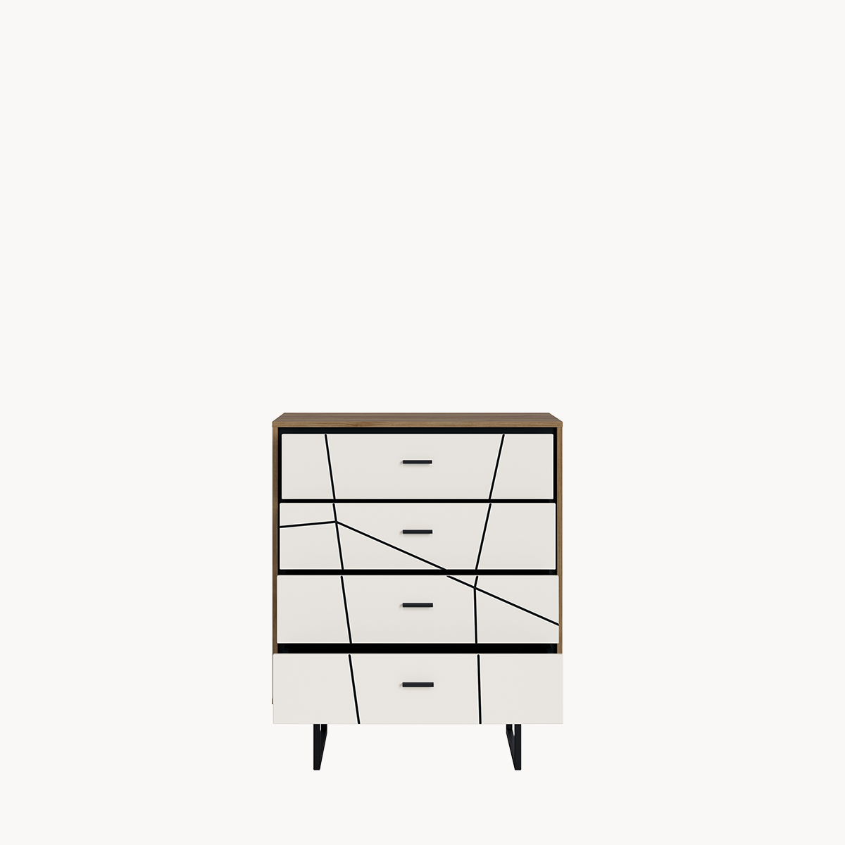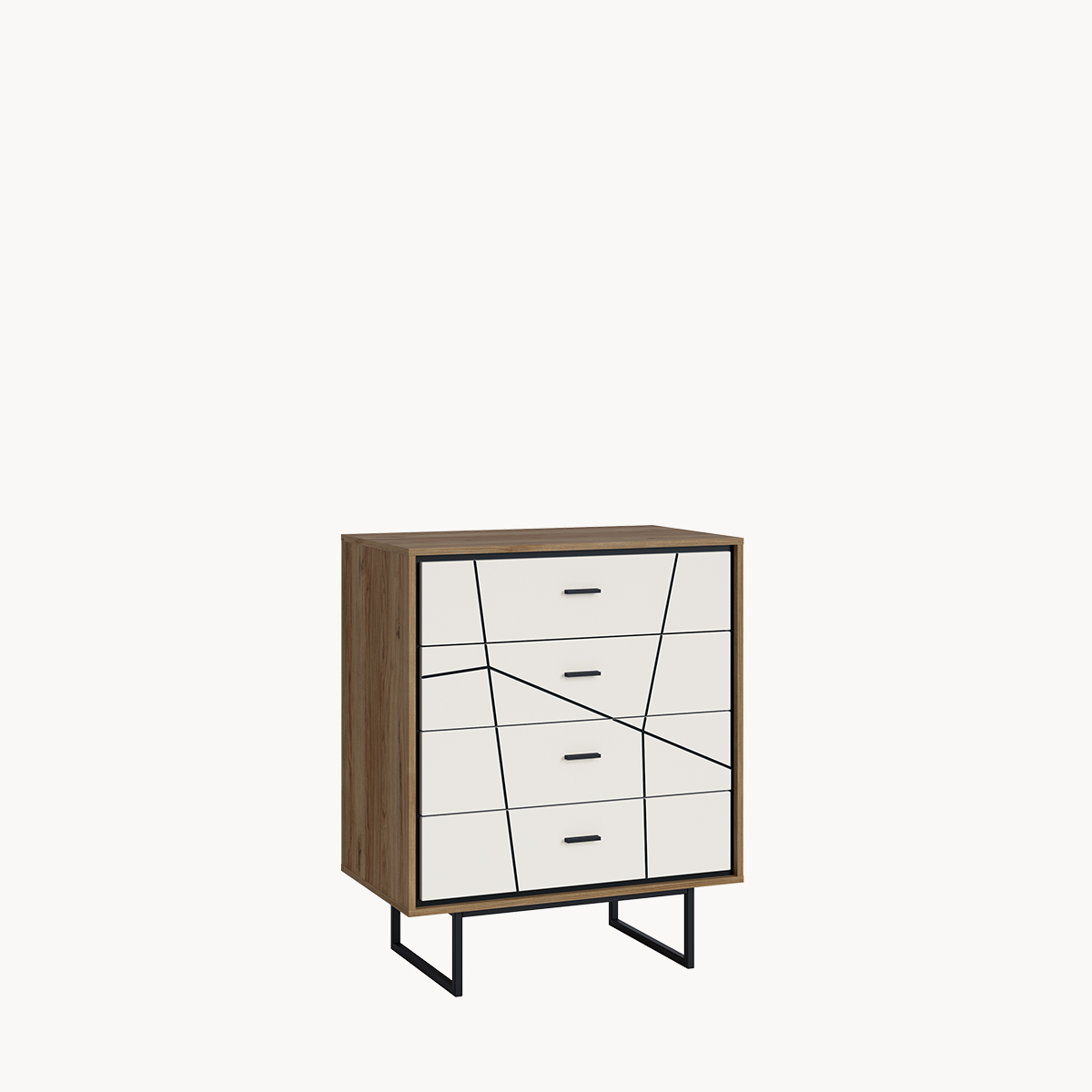 Komoda, 4 szuflady, dekor biały połysk, metalowy stelaż
