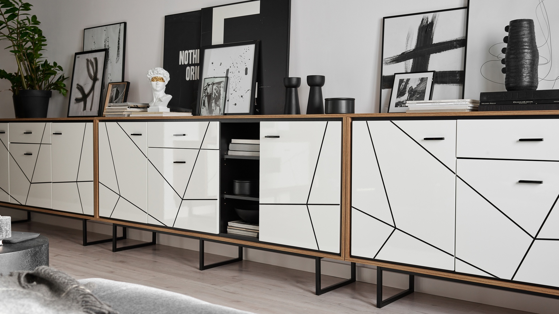 Brolo to propozycja dla osób, które cenią wyrazisty design i przytulny klimat wnętrza. Kolekcja doskonale komponuje się zarówno z odważnym, zielonym tłem, jak i stonowanymi odcieniami szarości. Komoda na metalowym stelażu, stół z synchroniczną prowadnicą oraz opcjonalne oświetlenie LED podkreślają nowoczesny styl mebli i nadają aranżacji elegancki charakter.