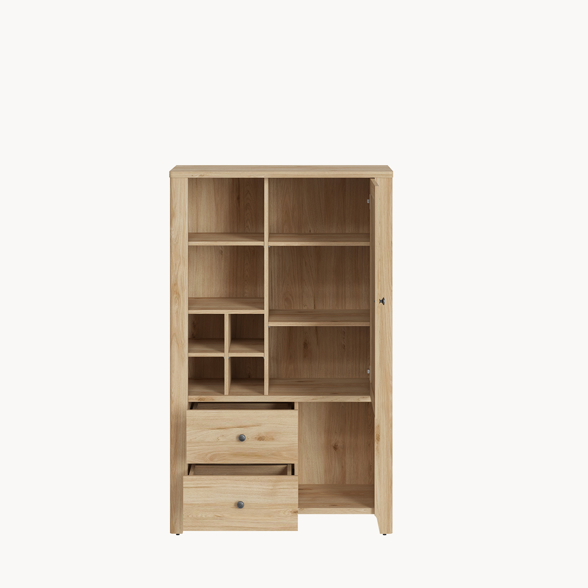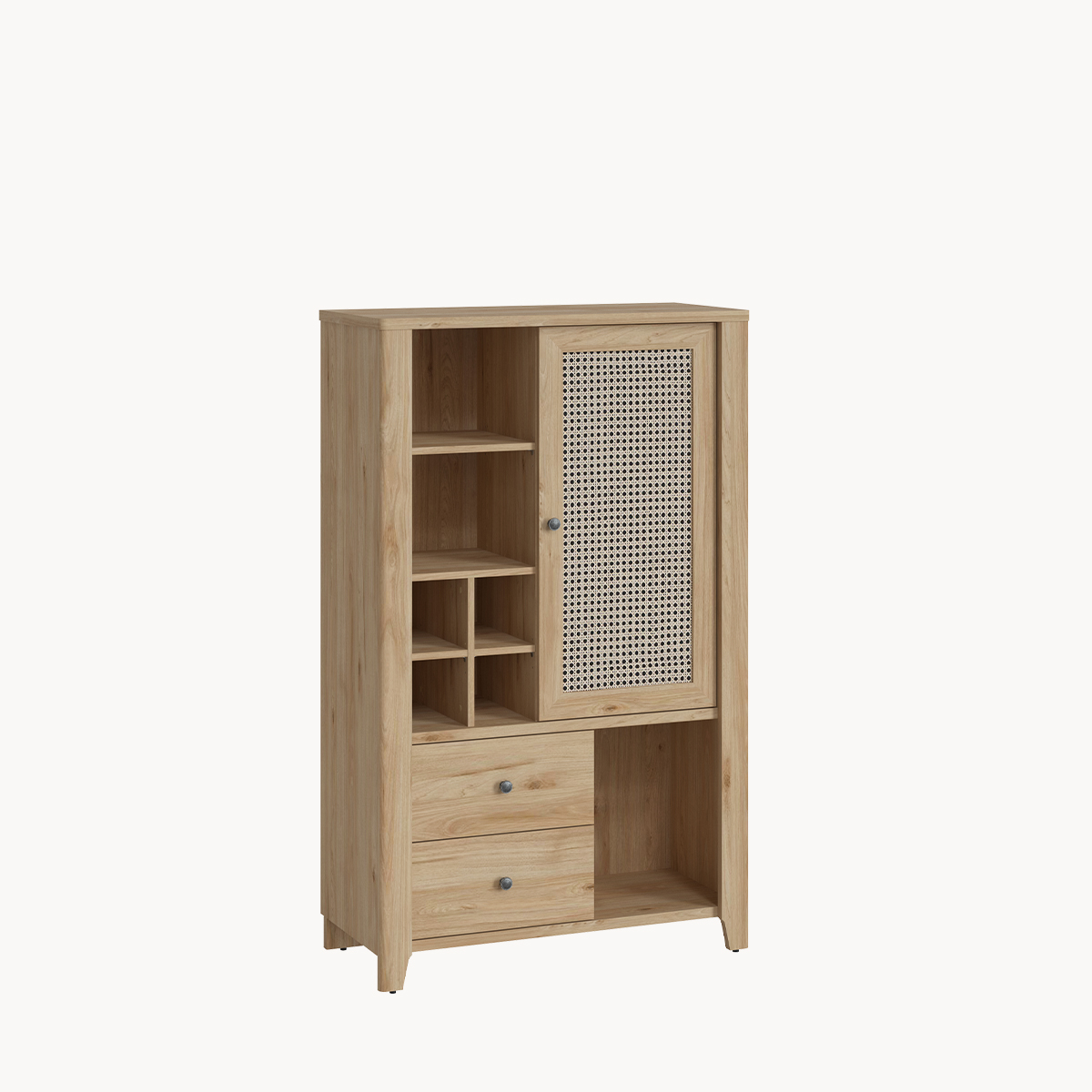 Komoda wysoka, 2 szuflady, imitacja ratanu, dekor naturalne drewno