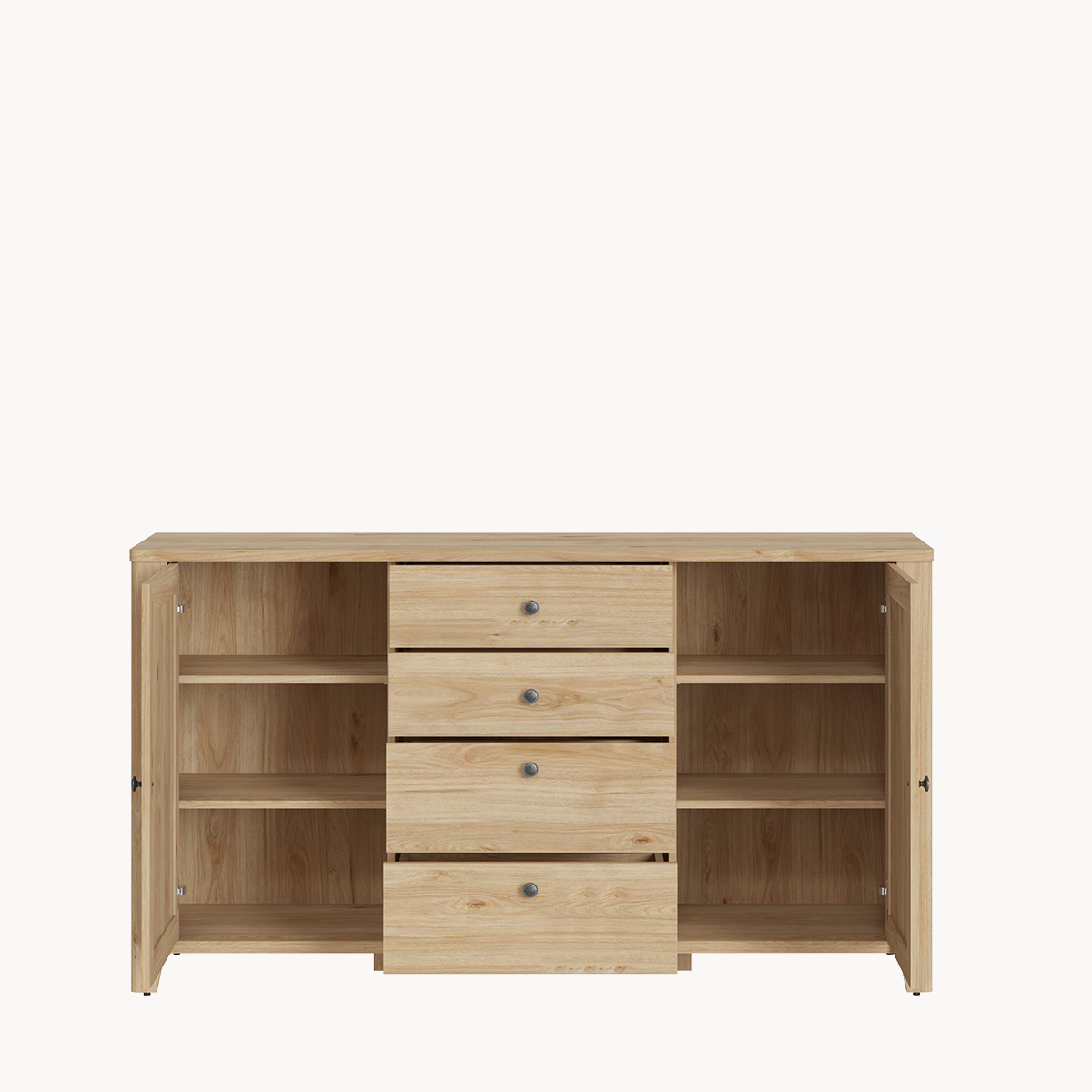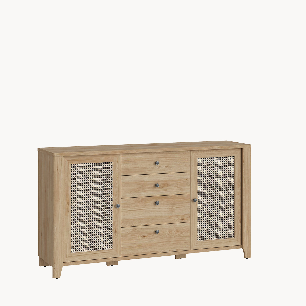 Komoda z 3 szufladami i półkami, ratanowy dekor