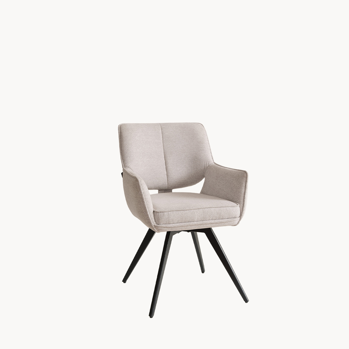 Krzesło tapicerowane DIONA to połączenie dopracowanej elegancji, komfortu i nowoczesnej funkcjonalności. Stonowana szara tapicerka nadaje mu ponadczasowy charakter, dzięki czemu z łatwością harmonizuje zarówno z nowoczesnymi, jak i bardziej klasycznymi aranżacjami wnętrz. Miękkie siedzisko, ergonomicznie wyprofilowane oparcie oraz przyjemna w dotyku tkanina zapewniają wysoki komfort użytkowania, a hydrofobowe wykończenie materiału pomaga na dłużej zachować estetyczny wygląd mebla. Całość osadzona na smukłym metalowym stelażu z czarnymi nogami prezentuje się lekko i stylowo, a obrotowe siedzisko z mechanizmem zwrotnym podnosi wygodę codziennego użytkowania.