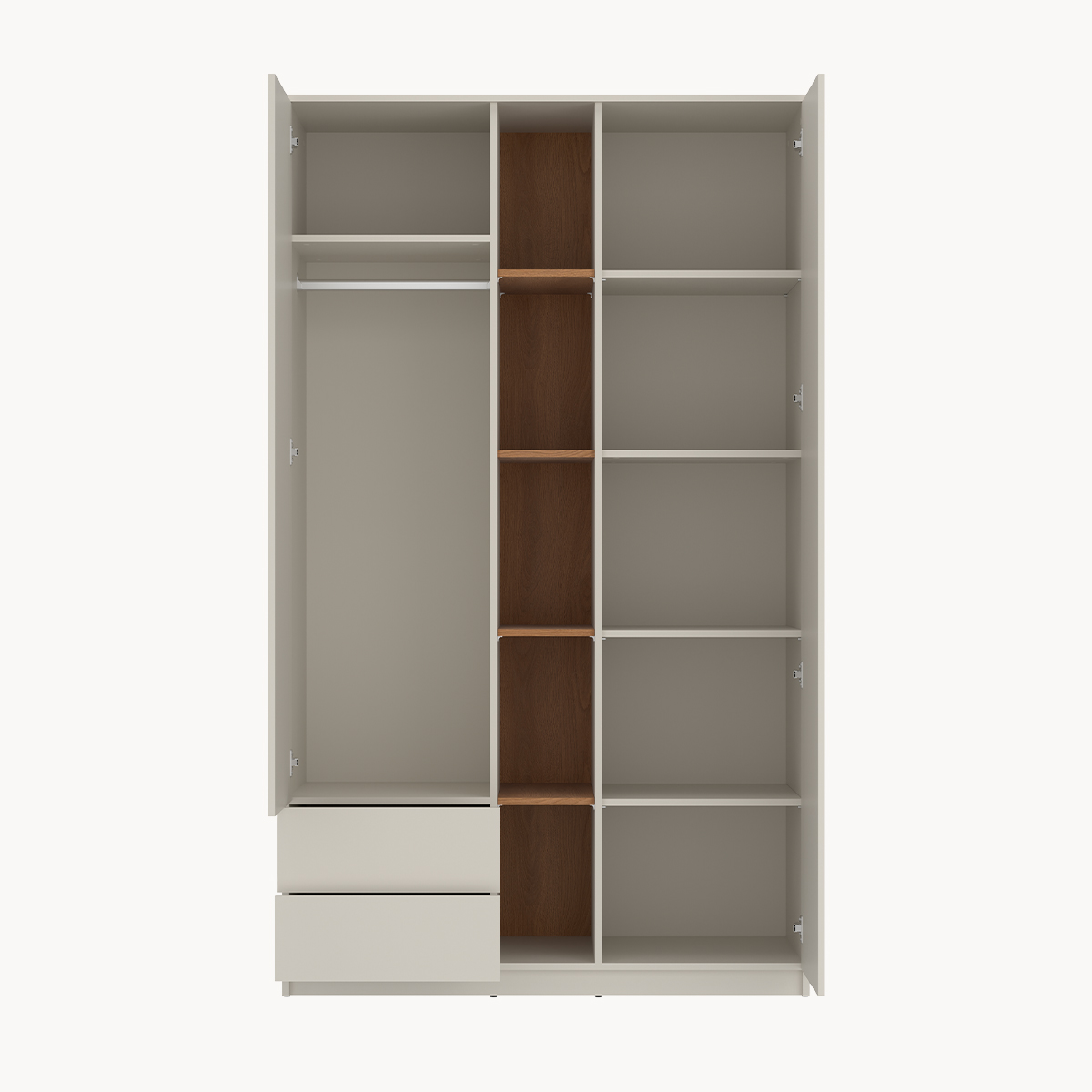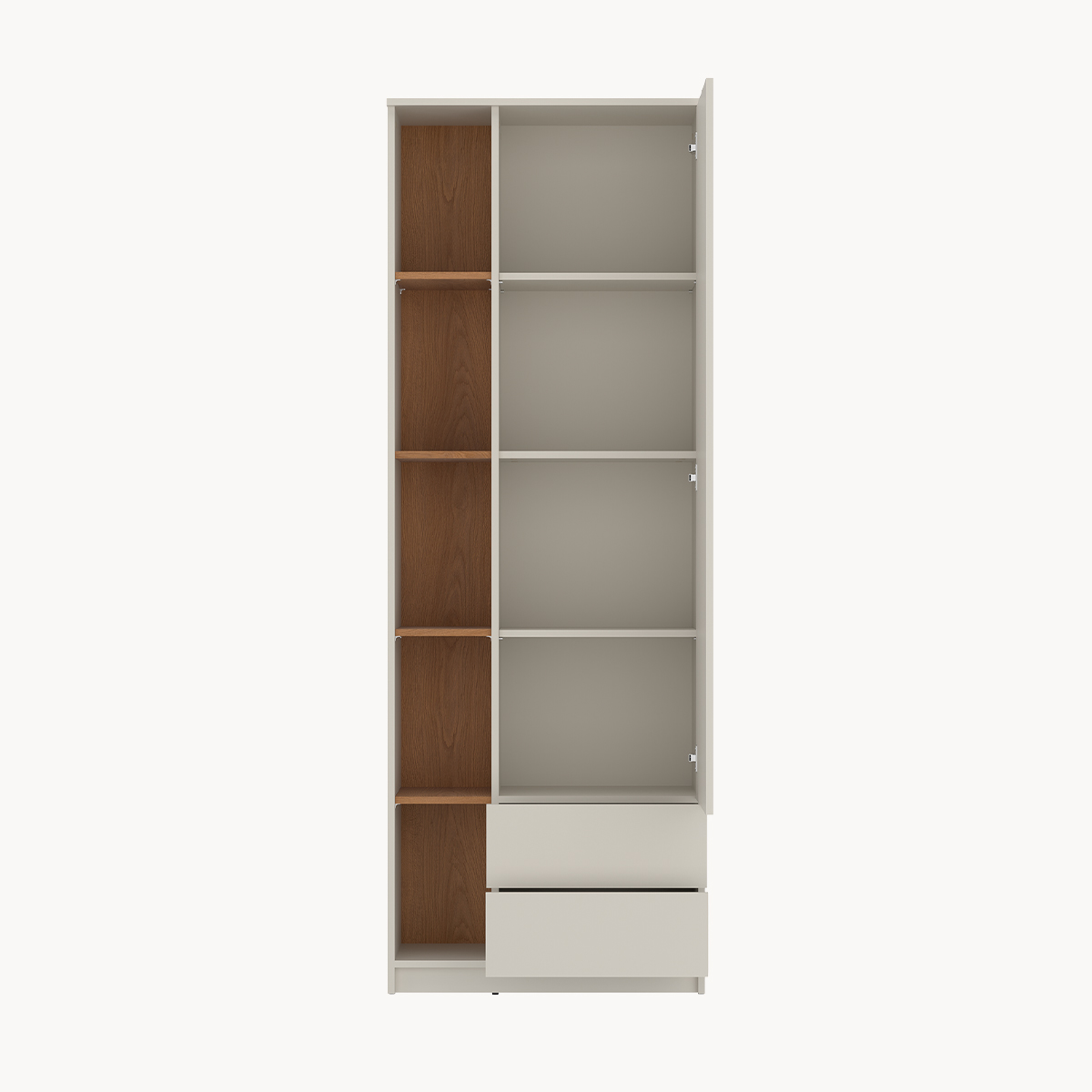 Szafa 2-drzwiowa z szufladami i ozdobnymi półkami, kaszmir