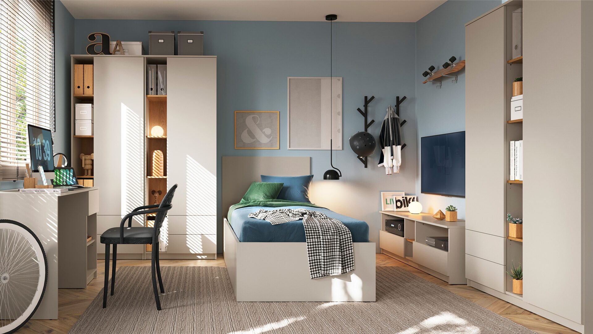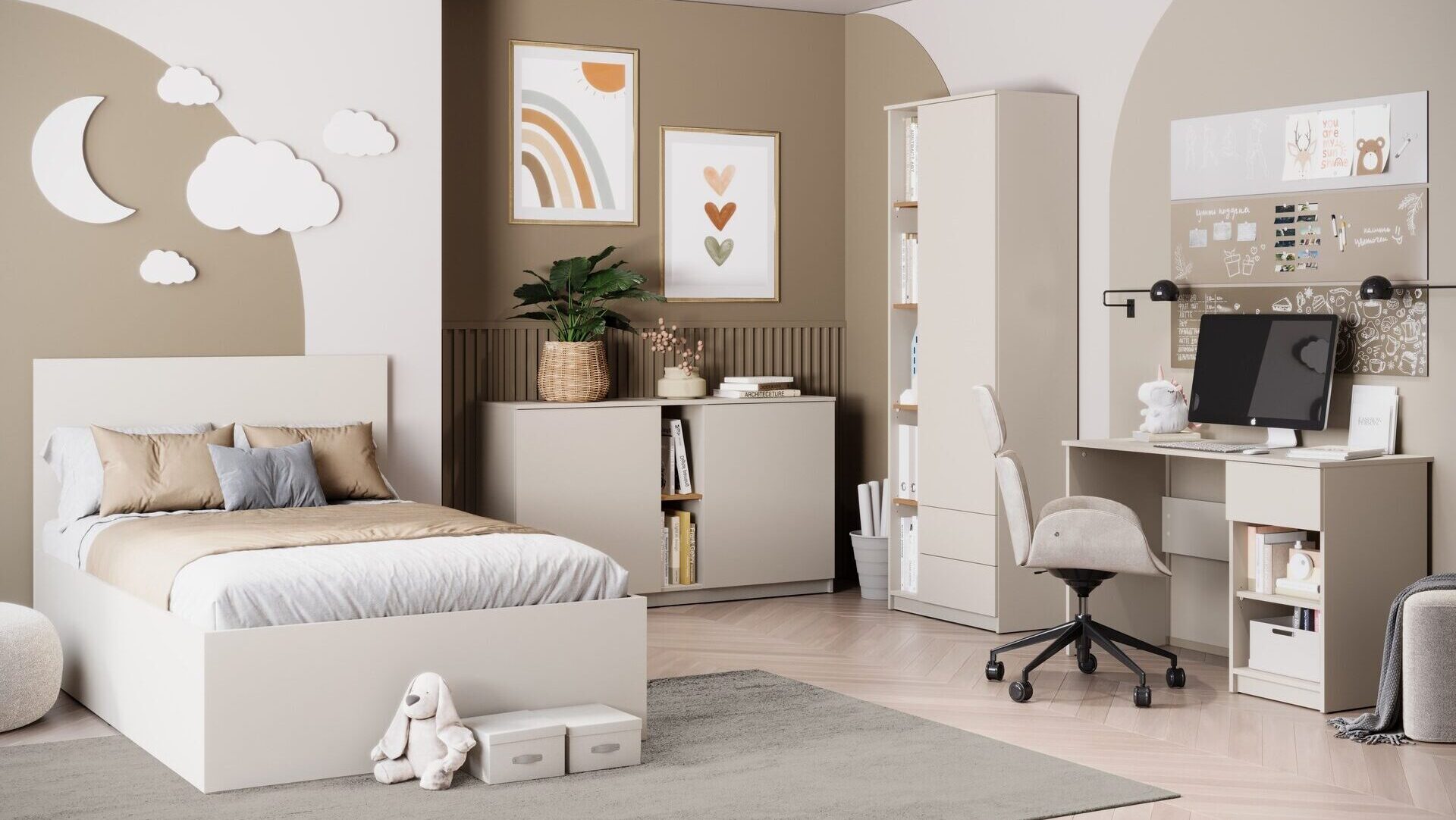 Kolekcja FANO do pokoju młodzieżowego wyróżnia się nowoczesnym minimalizmem i prostymi bryłami pozbawionymi uchwytów. Stylowe zestawienie kolorów kaszmiru z karmelowym dębem nadaje meblom uniwersalny charakter, który doskonale komponuje się z różnymi aranżacjami wnętrz. FANO harmonijnie łączy funkcjonalność z estetyką, oferując nowoczesne rozwiązania dekoracyjne, które są zarówno praktyczne, jak i eleganckie.