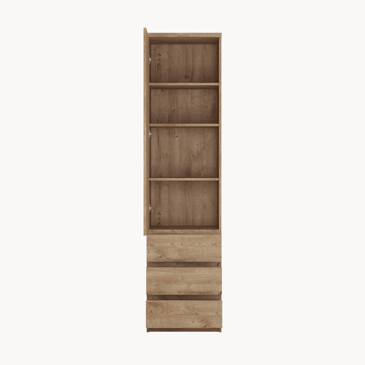 Szafa wąska, 3 szuflady, półki, dekor drewno