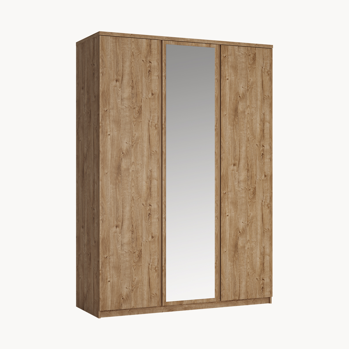 Szafa 3-drzwiowa z lustrem, drążki, półki, dekor drewno