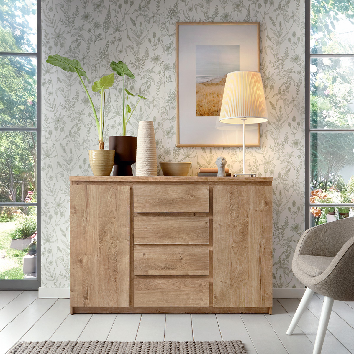Komoda 2-drzwiowa z 4 szufladami, dekor drewno