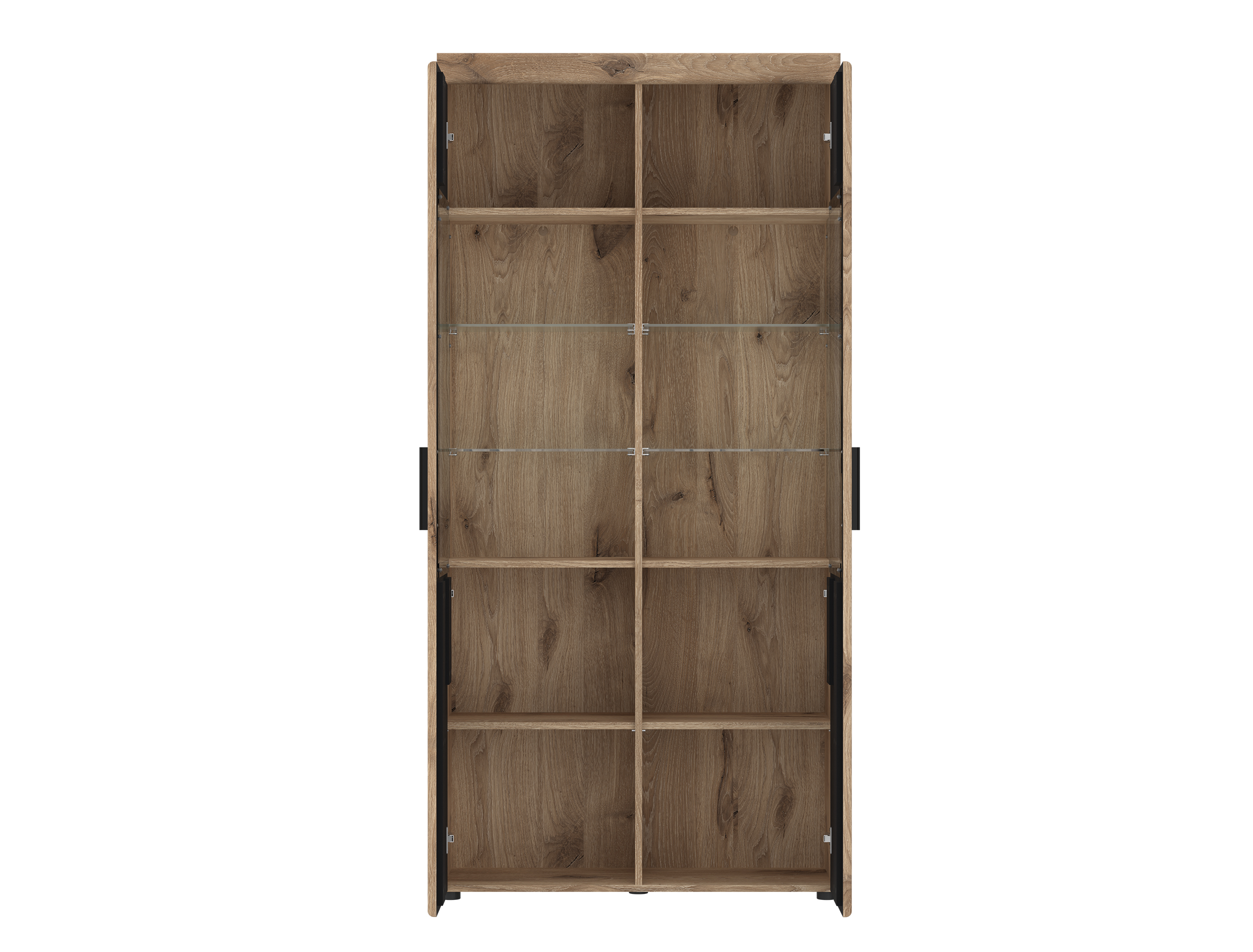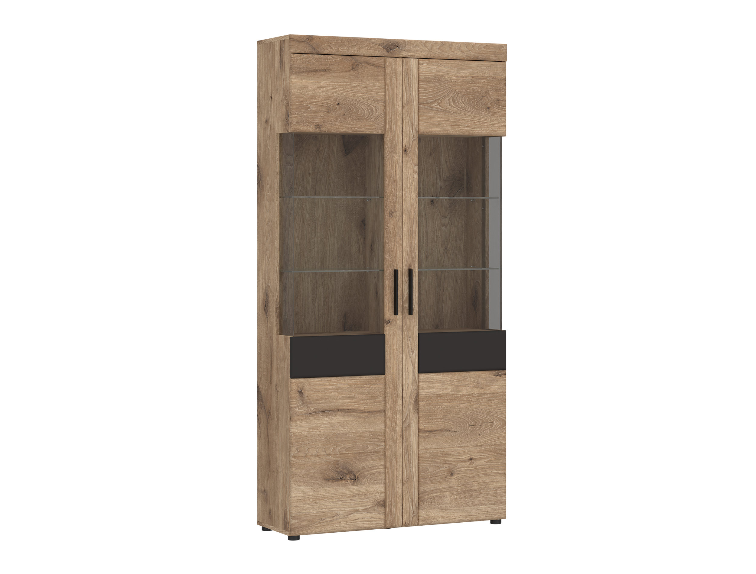 Witryna 2-drzwiowa, duża, przeszklone bok, dekor naturalnego drewna