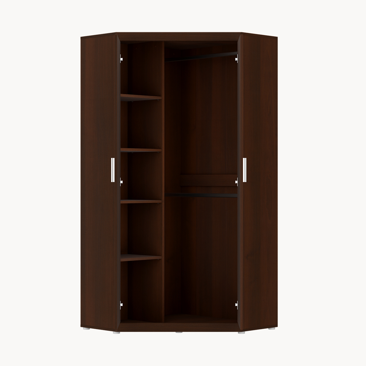 Szafa narożna 2-drzwiowa, drążek, półki, brąz