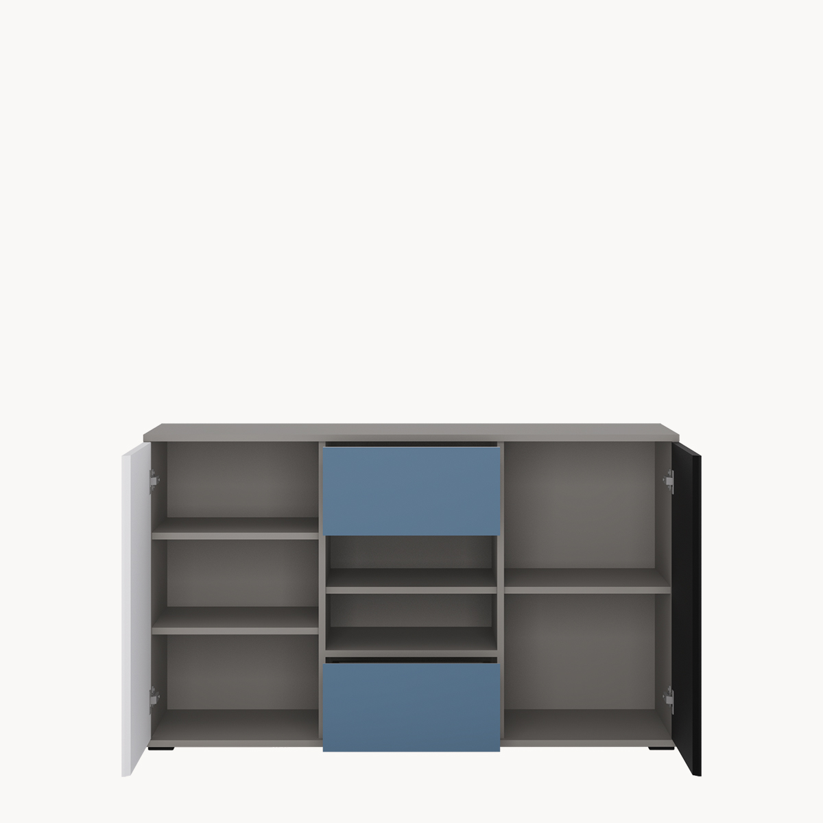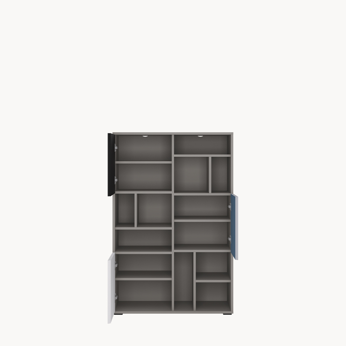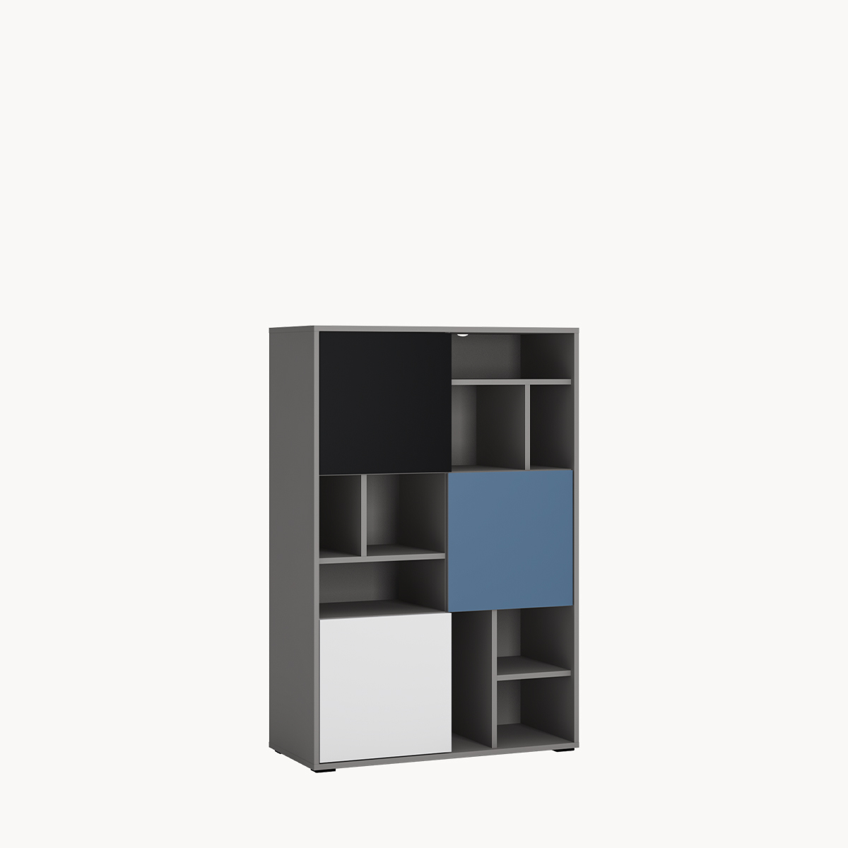 Regał niski 3-drzwiowy, dużo przegródek, wielokolorowy