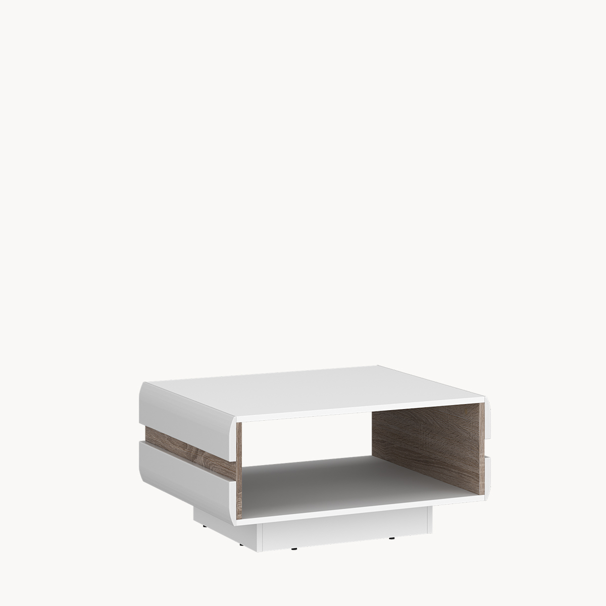 Stolik kawowy, kwadratowy, półka, biały połysk