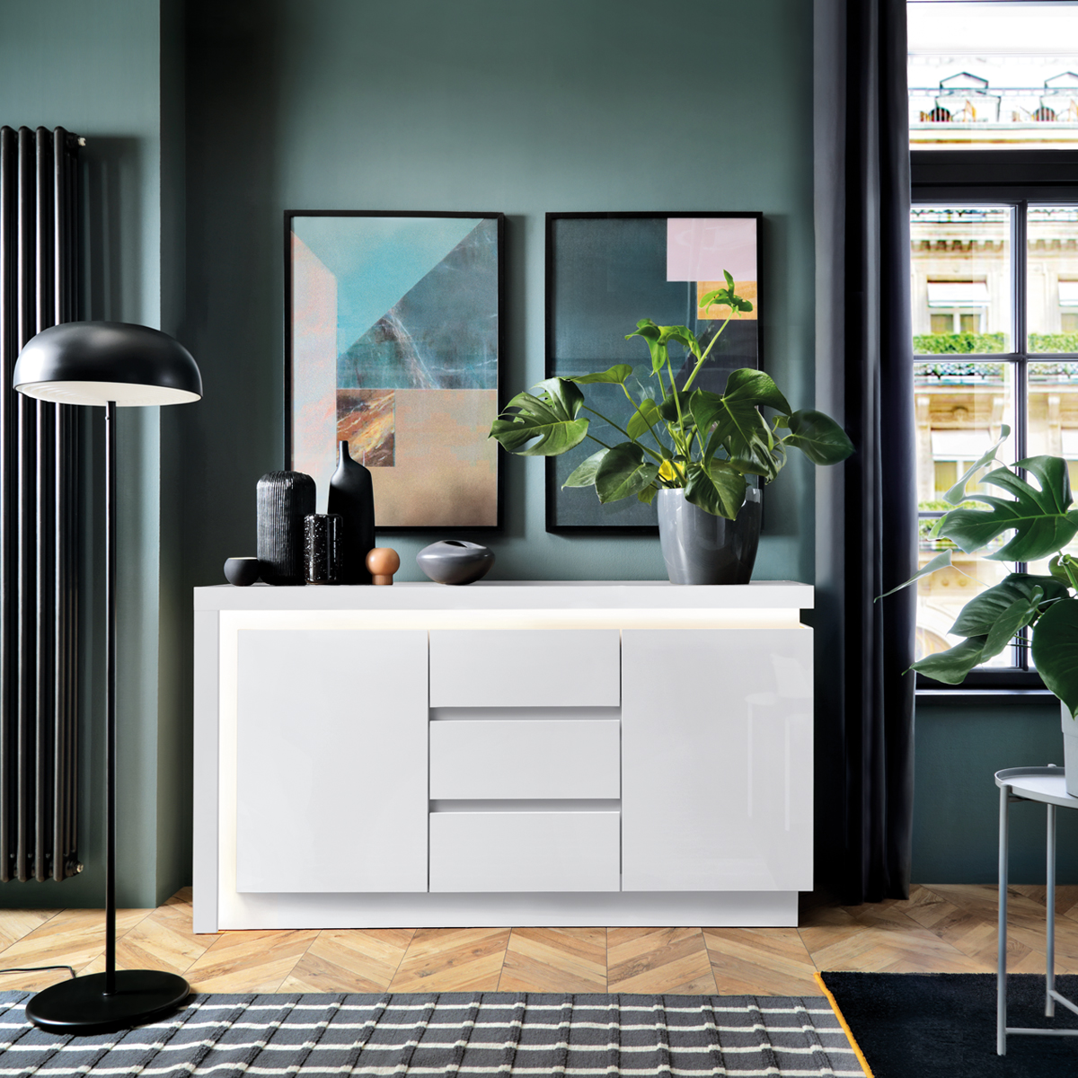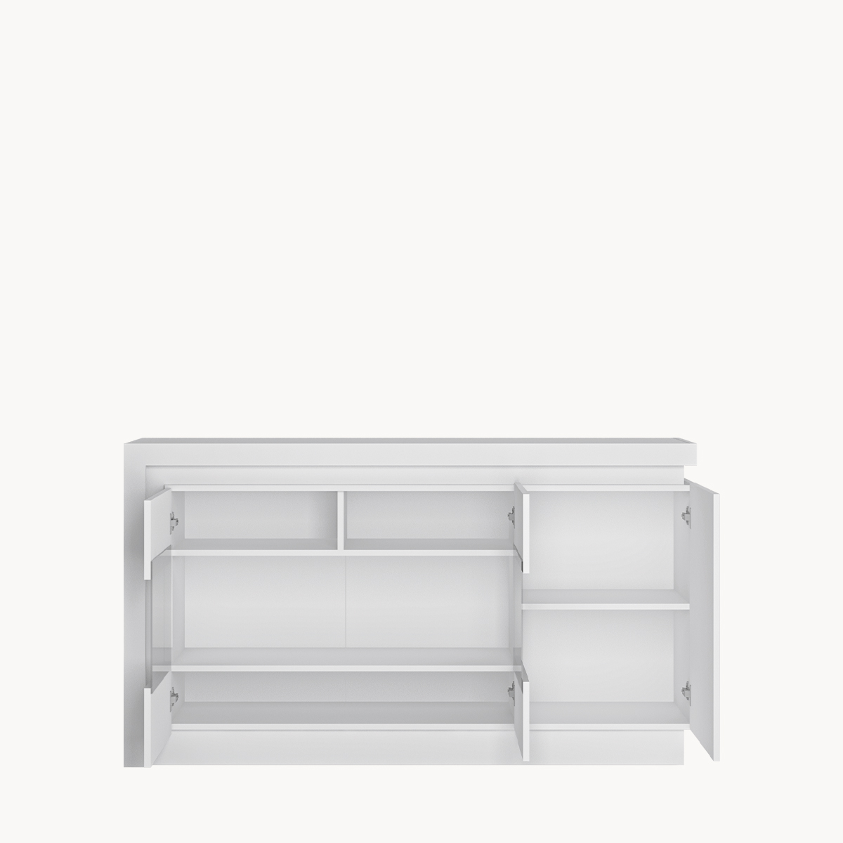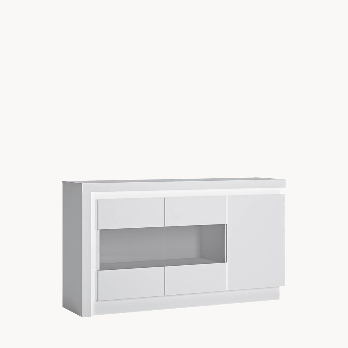 Komoda 3-drzwiowa z przeszkleniem, podświetlana, biały połysk