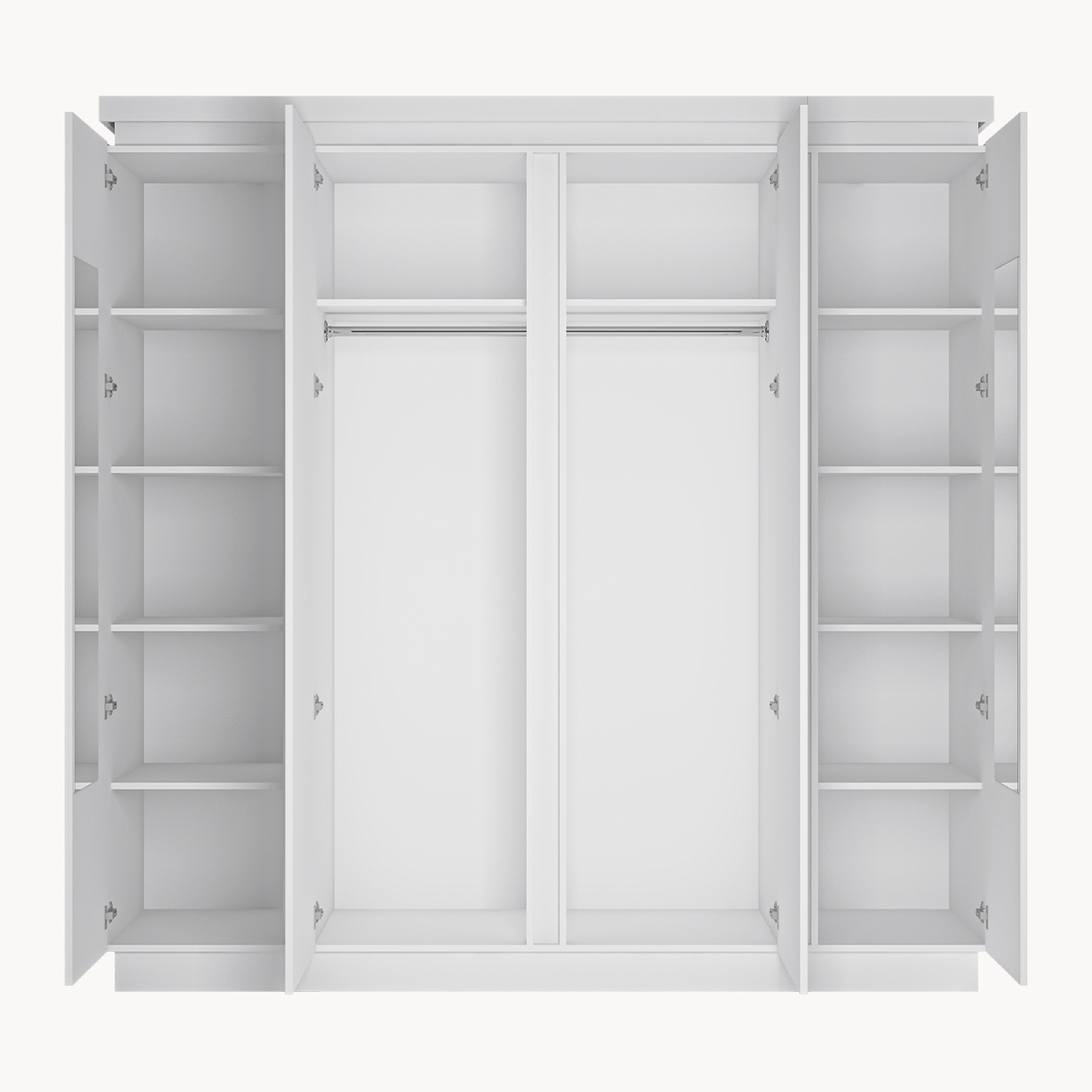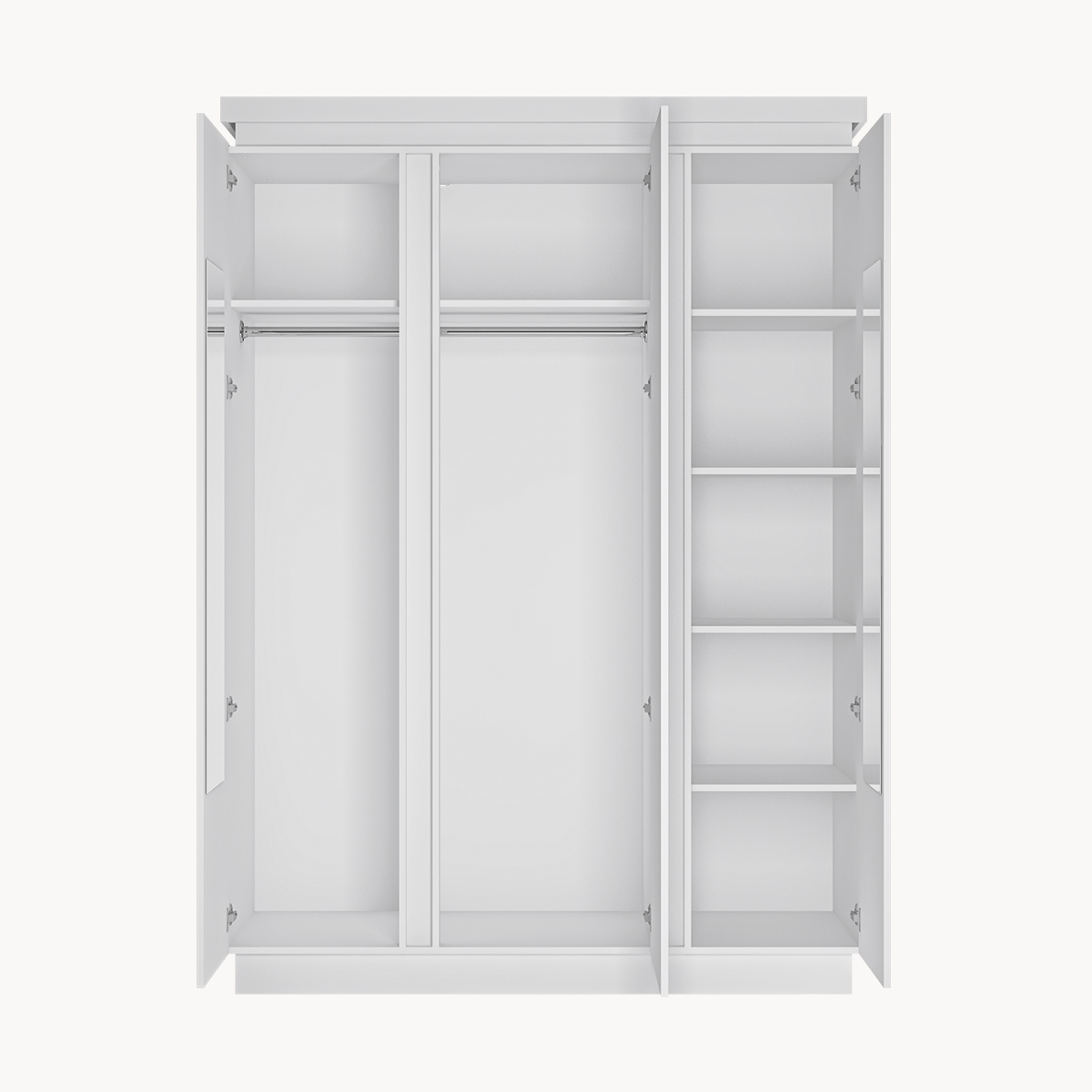 Szafa 4-drzwiowa, lustra,drążki, półki, biały połysk