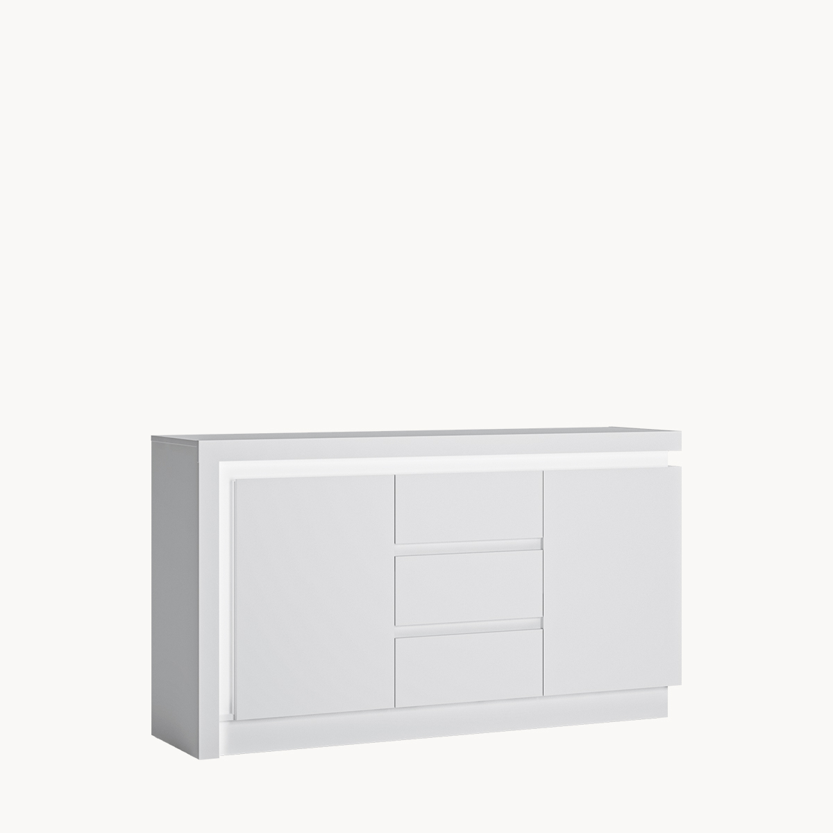 Komoda 2-drzwiowa z szufladami, podświetlana, biały połysk