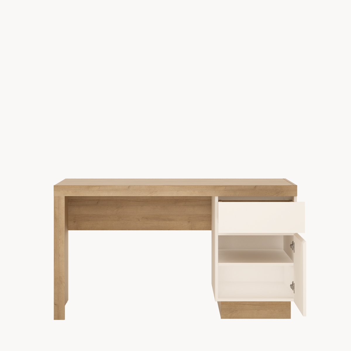 Biurko z szuflada i szafką, biały połysk