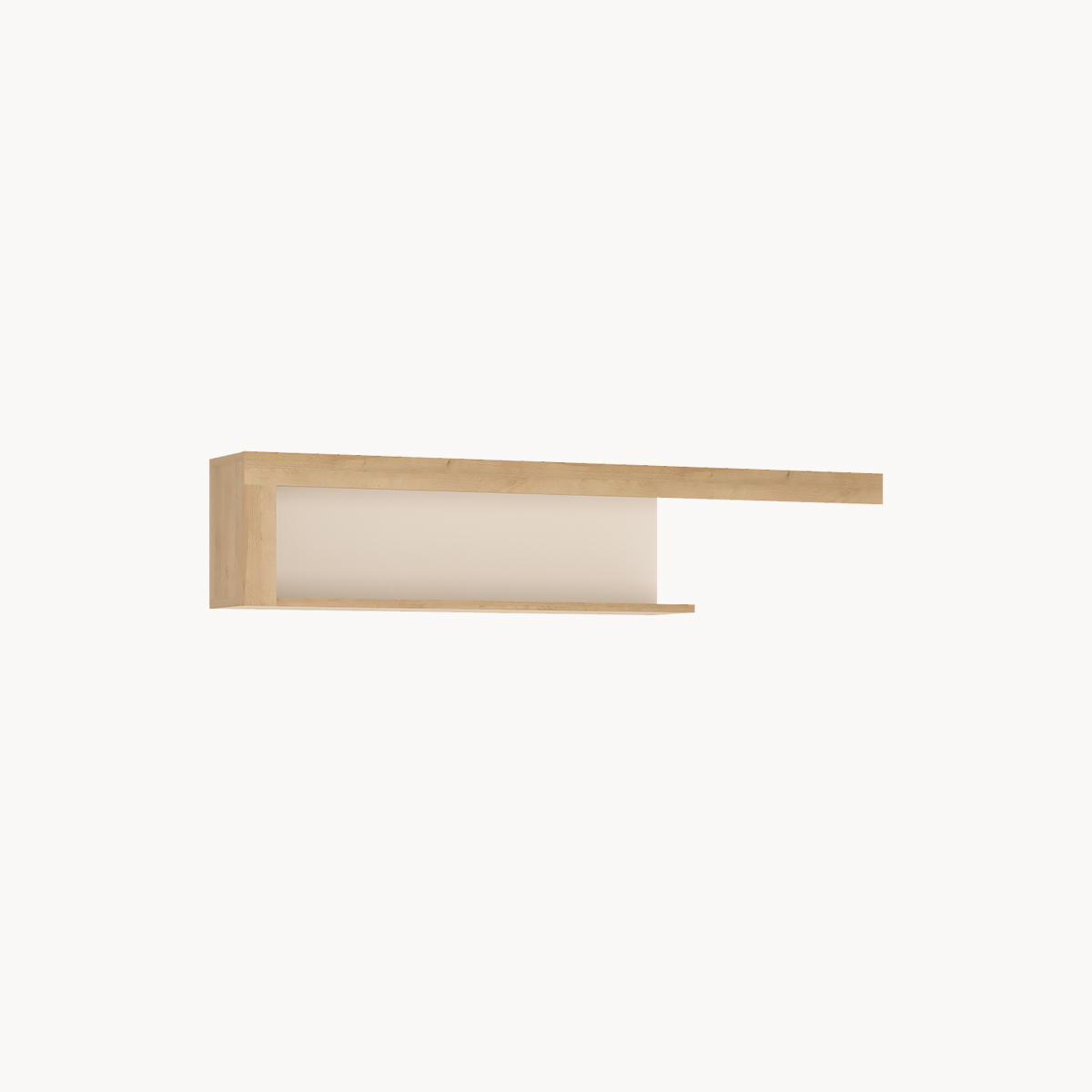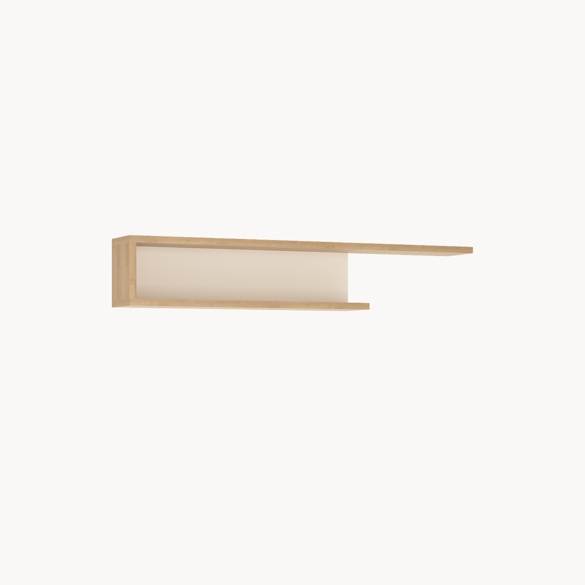 Półka ścienna z boczną ścianką, dekor jasne drewno, biały połysk