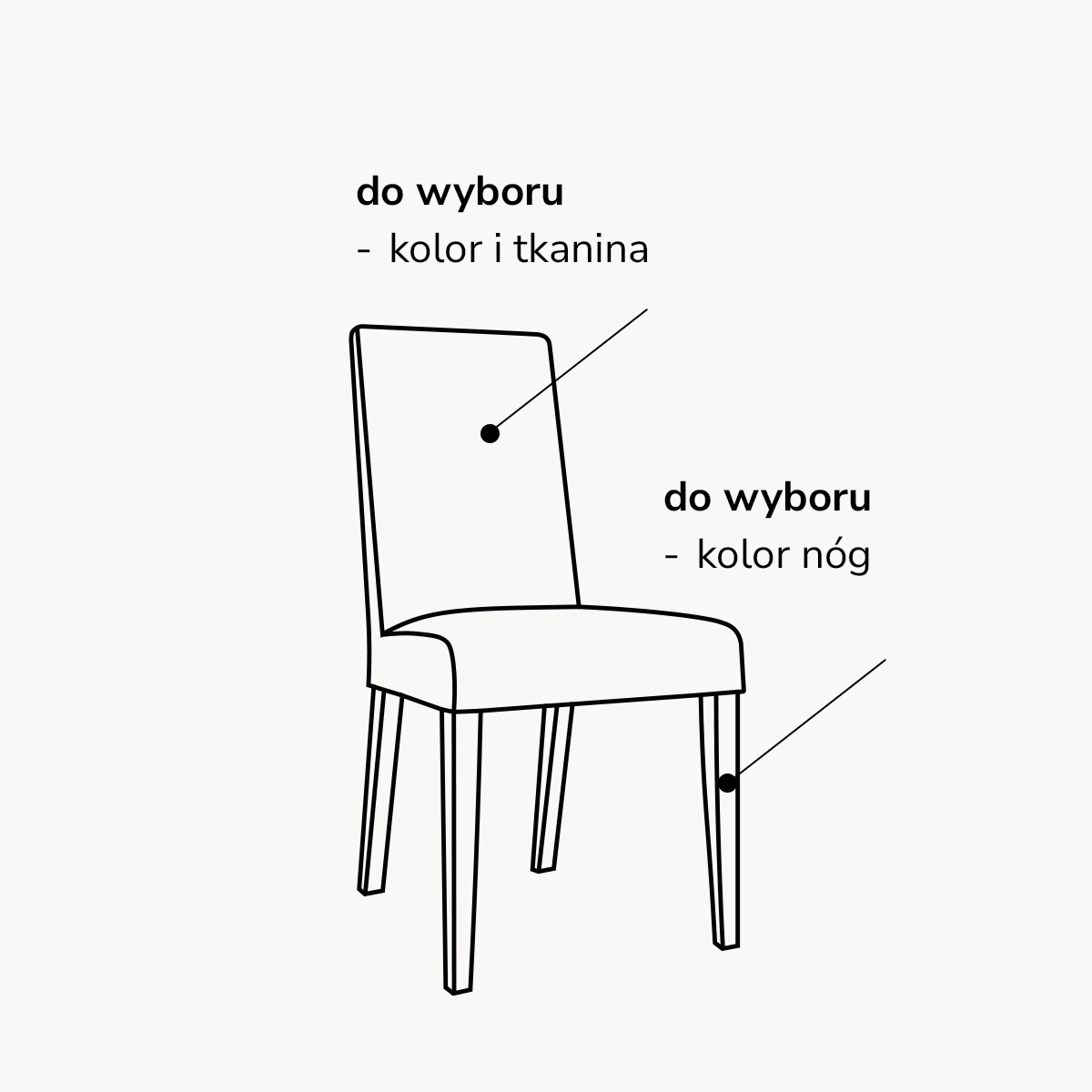 Nowoczesne krzesło Modern, z wyborem tkanin i koloru nóg, tapicerowane