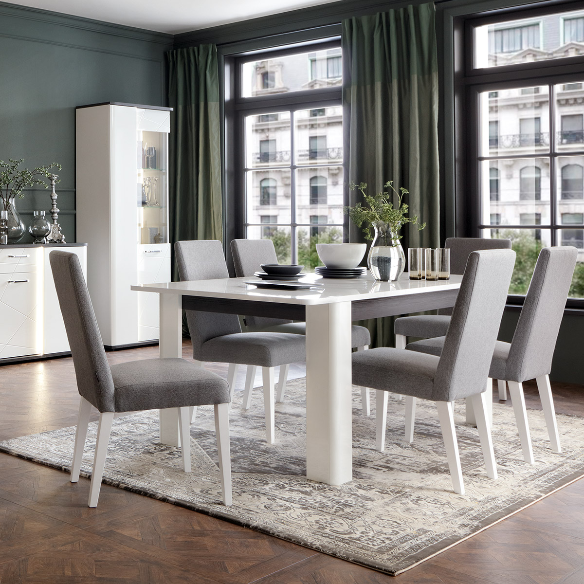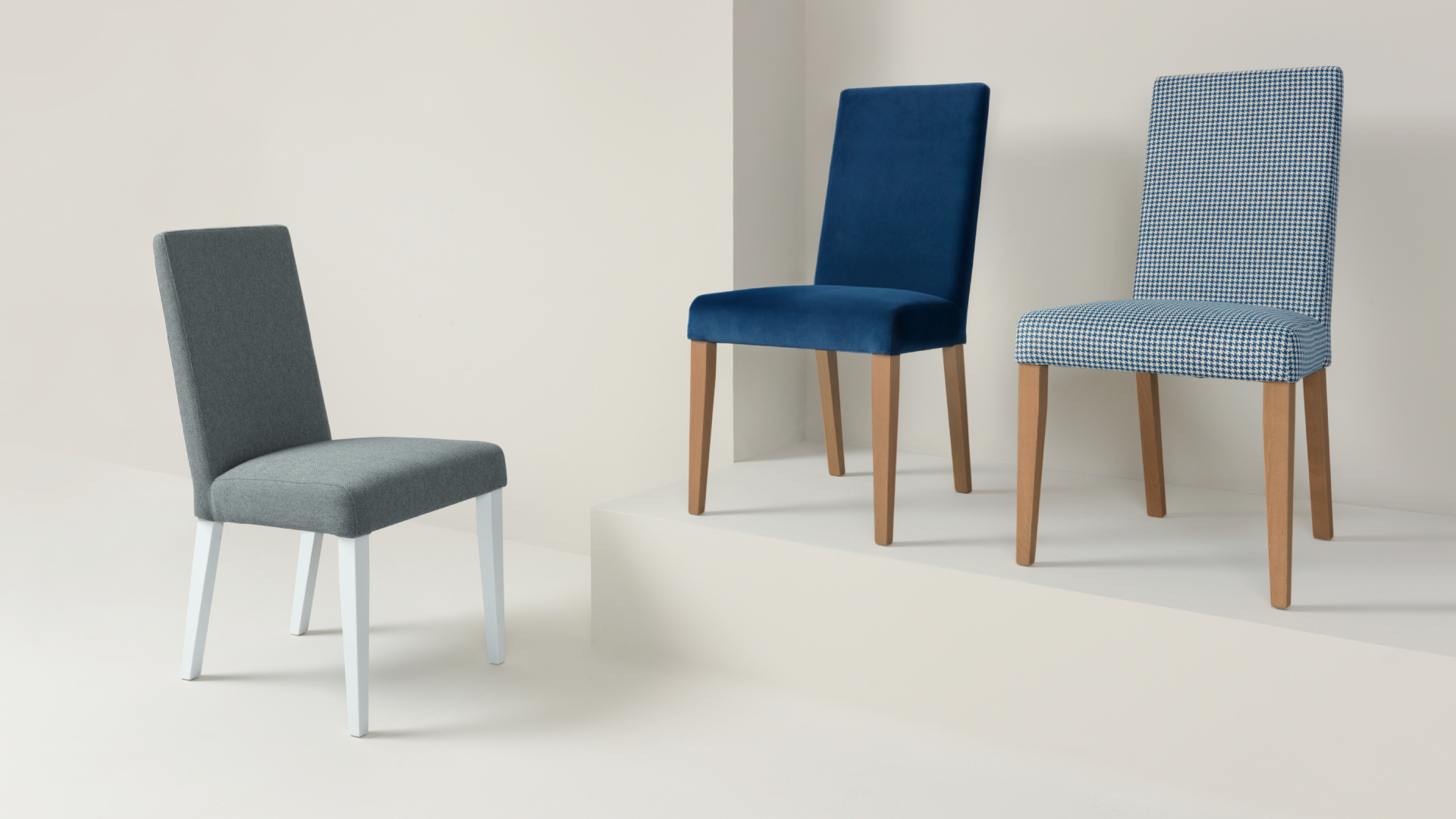 Nowoczesne krzesło Modern, tapicerowane, stalowa szarość, białe nogi