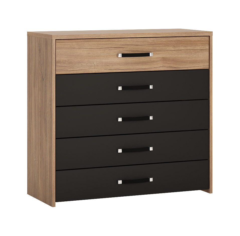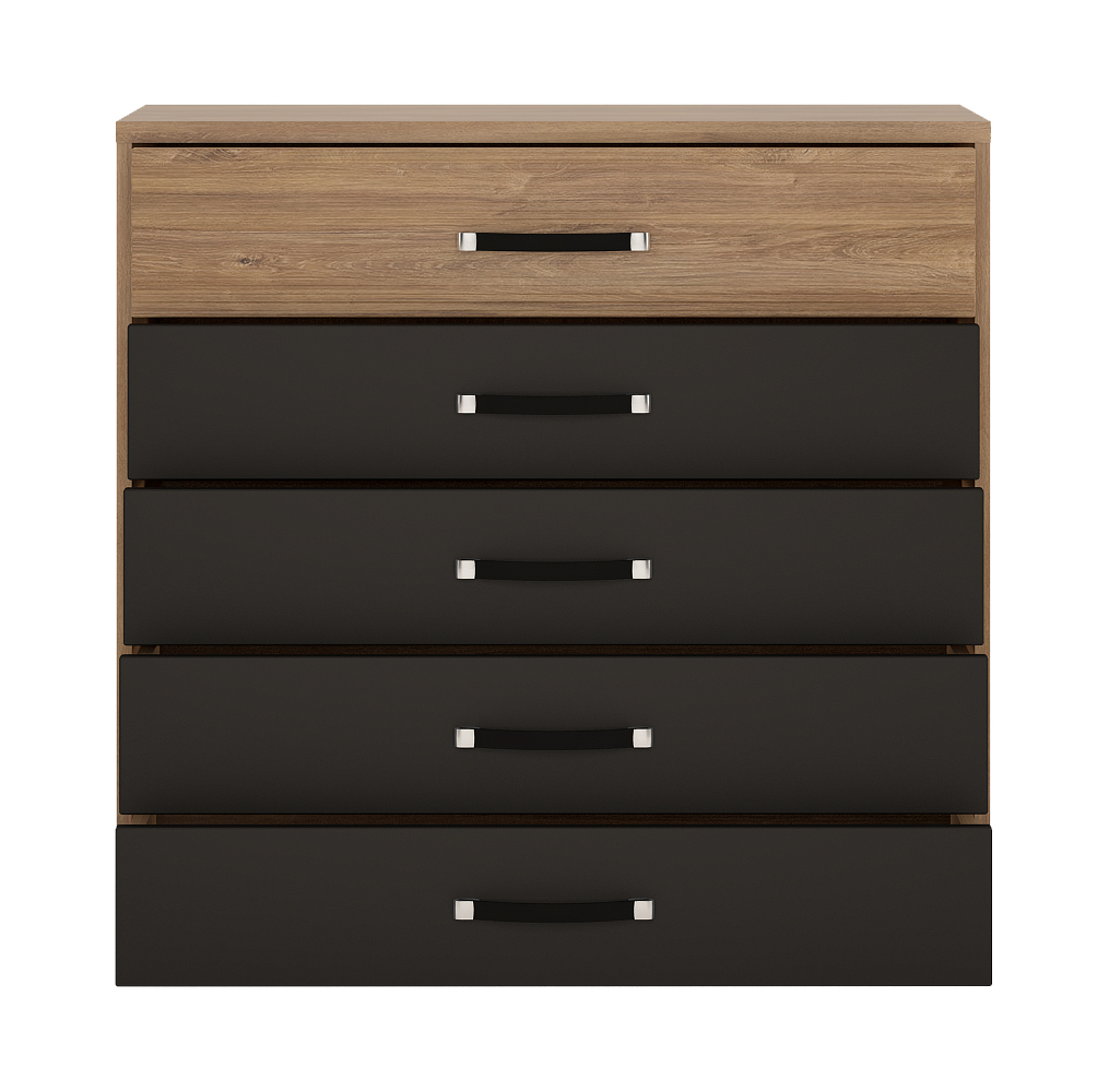 Komoda z szufladami, czarny mat, z metalowymi uchwytami