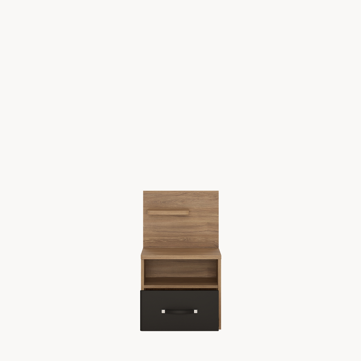 Szafka nocna, czarny mat z drewnianym dekorem, z metalowym uchwytem, lewostronna