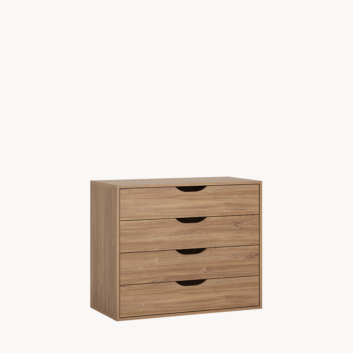 Komoda z szufladami, drewniany dekor, bez uchwytów