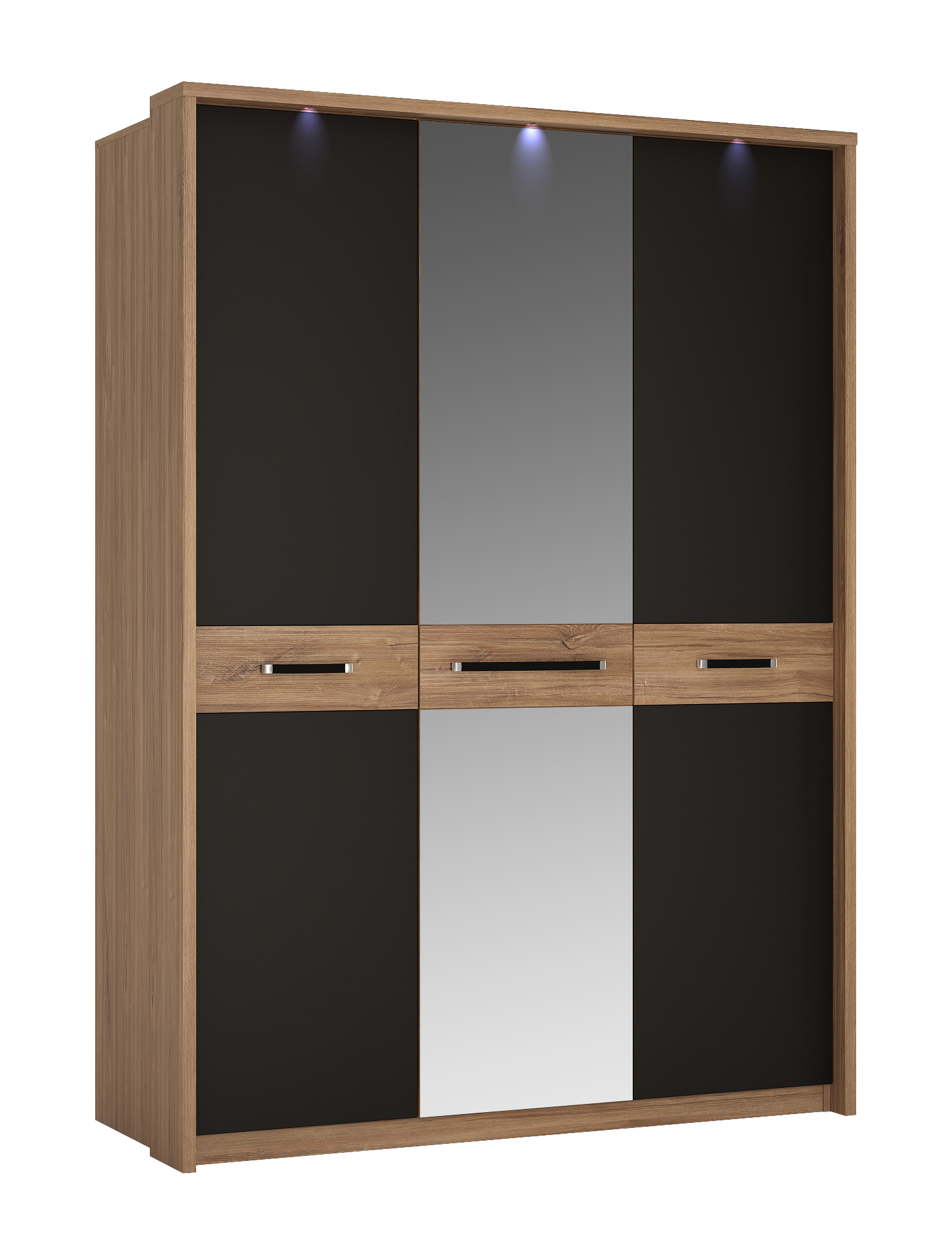 Szafa 3 drzwiowa, czarny mat, z lustrem i oświetleniem