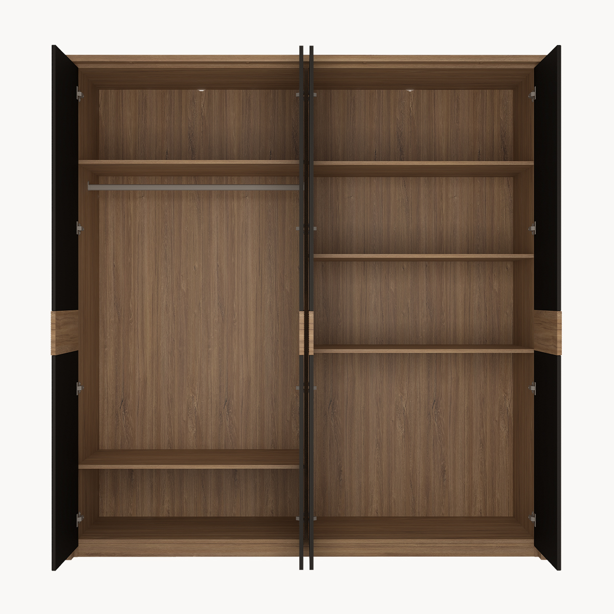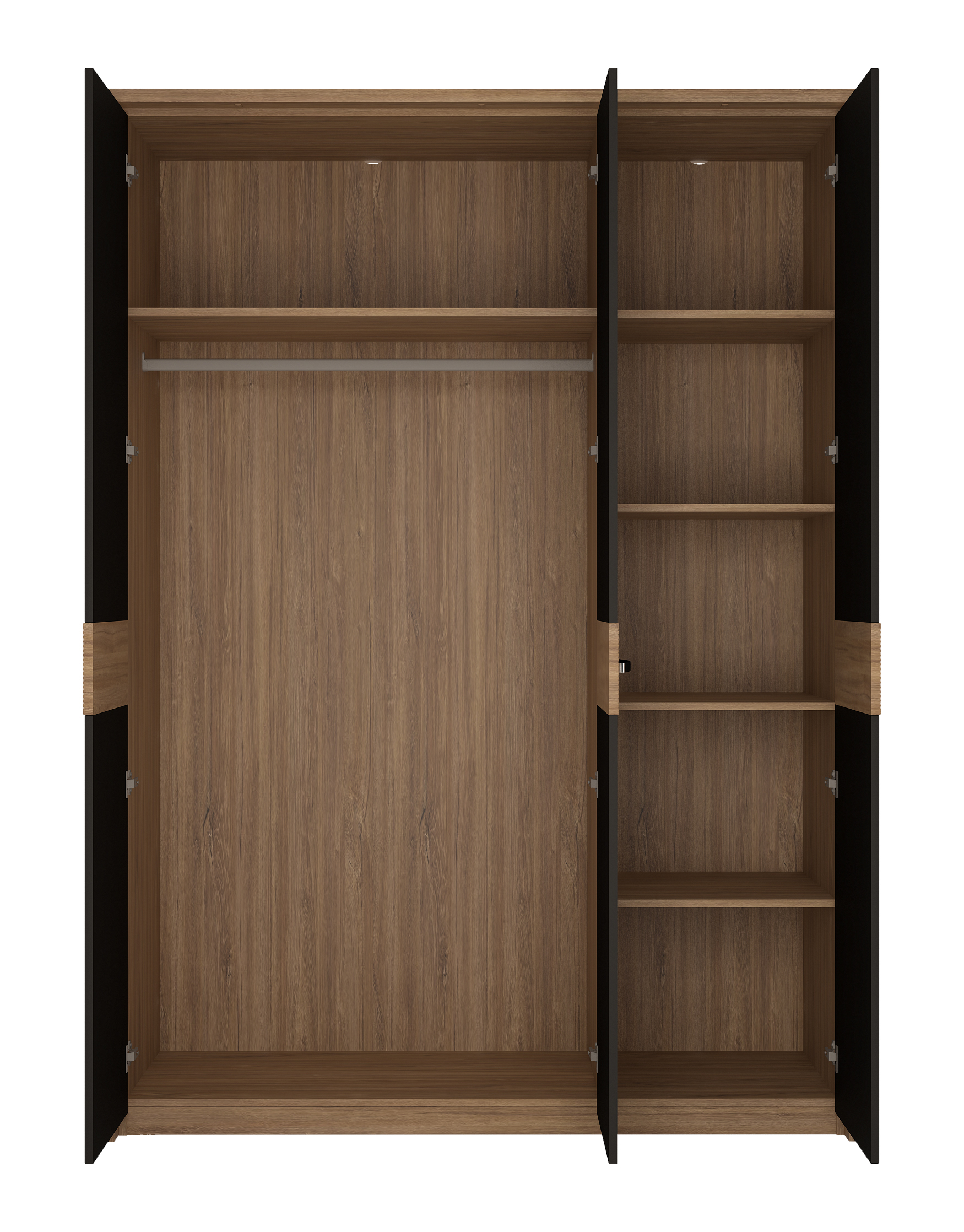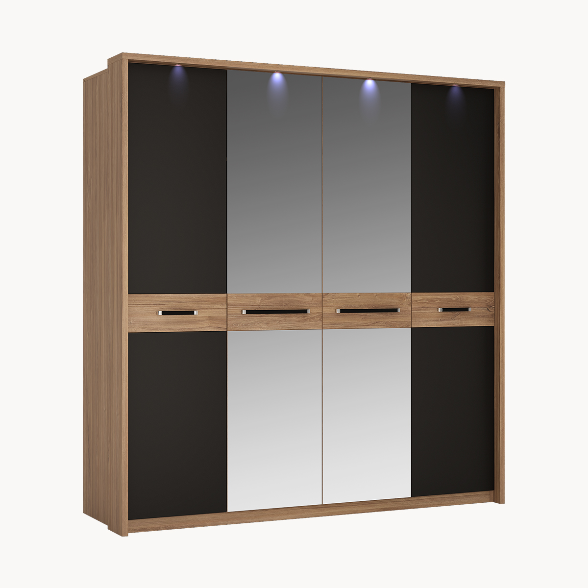Szafa 4 drzwiowa, czarny mat, z lustrem i oświetleniem