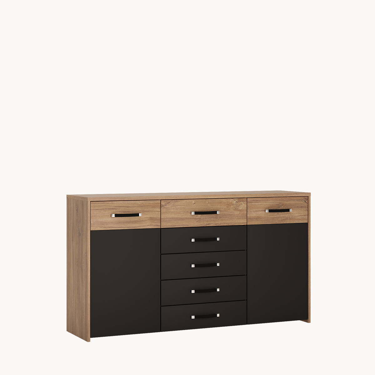 Komoda z szufladami i półkami, czarny mat, z metalowymi uchwytami