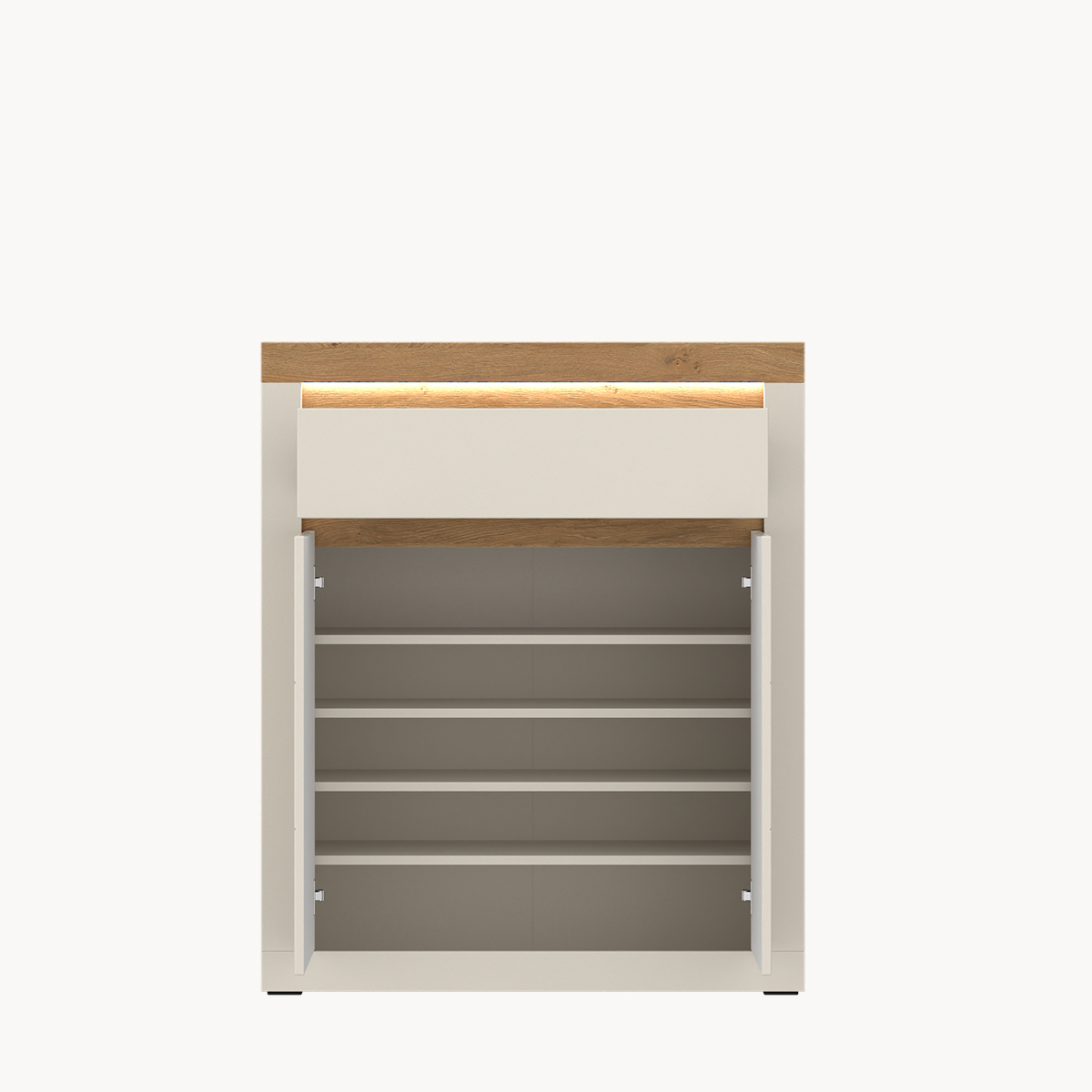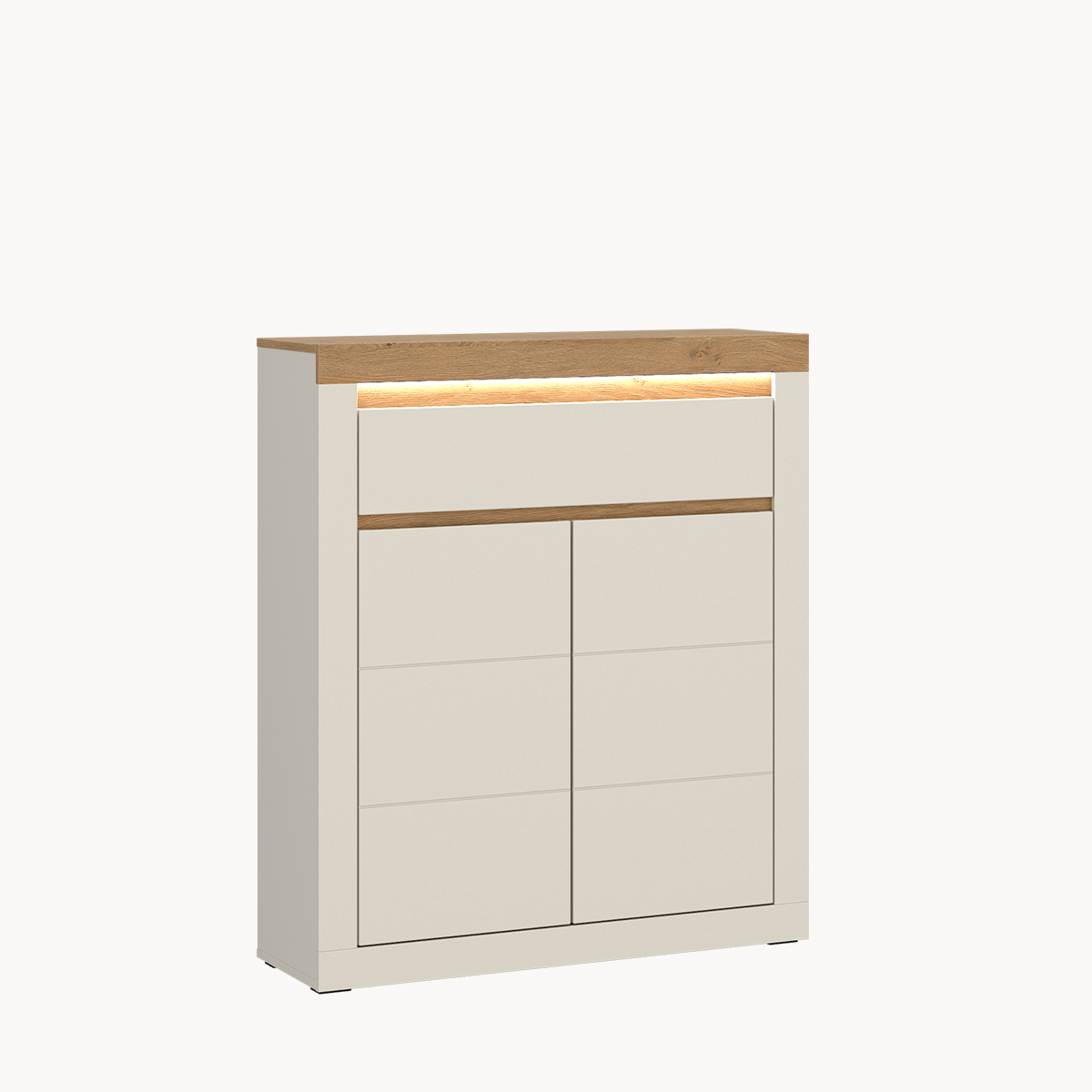 Wysoka komoda do przedpokoju, podświetlana, z dużą szufladą, kaszmir