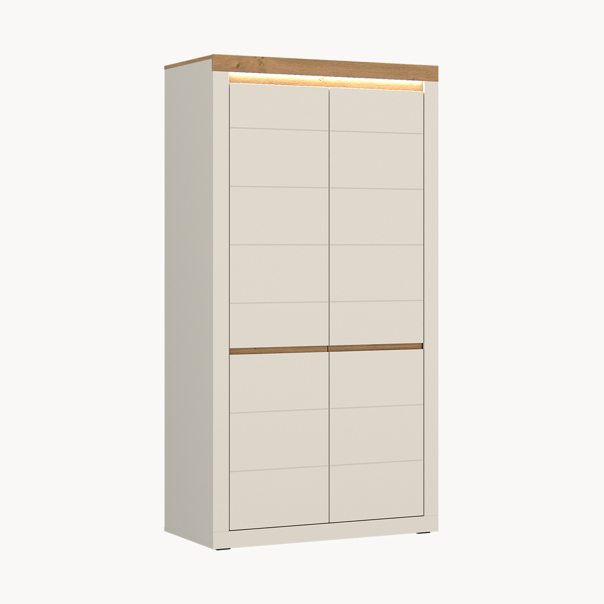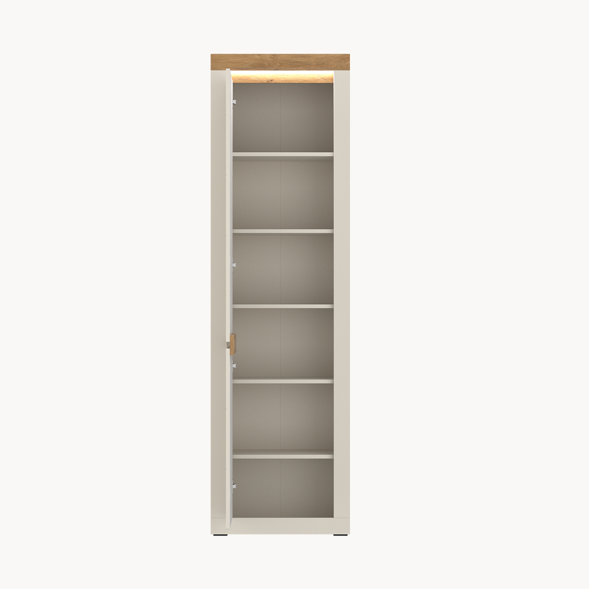 Wysoka witryna 2-drzwiowa, lewostronna, podświetlana, kolor kaszmir
