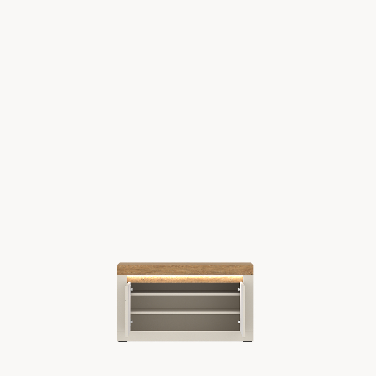 Duża komoda pod TV podświetlana, bez uchwytów, kaszmir, 2 szuflady