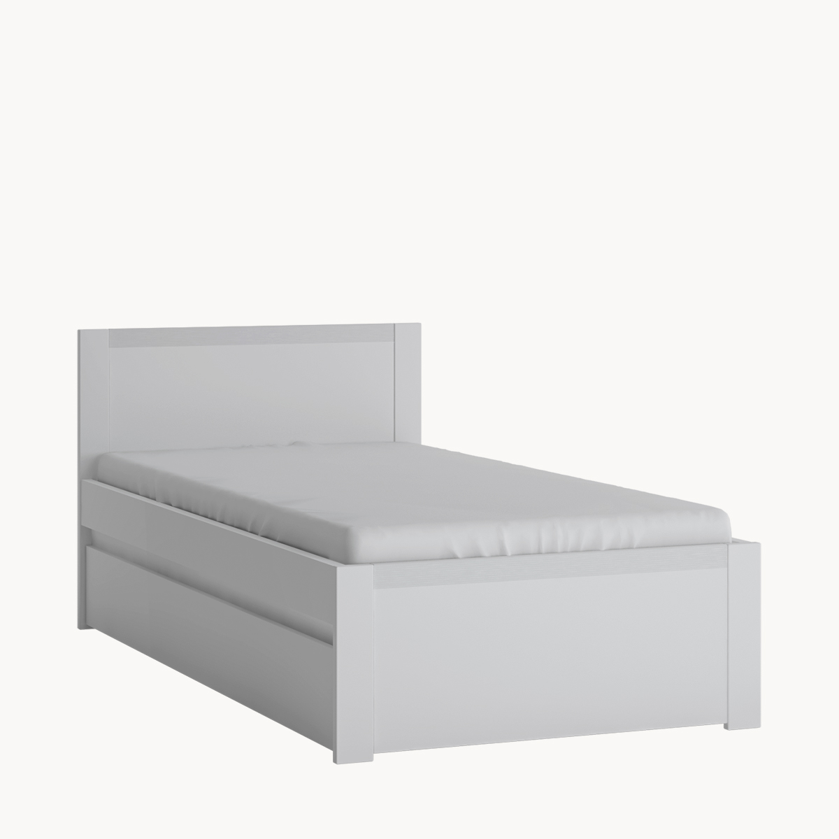 Łóżko jednoosobowe 90×200 cm, białe, z szufladą