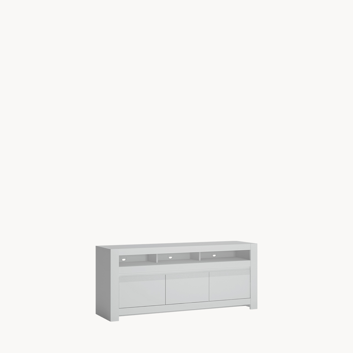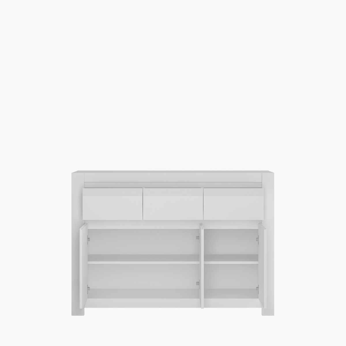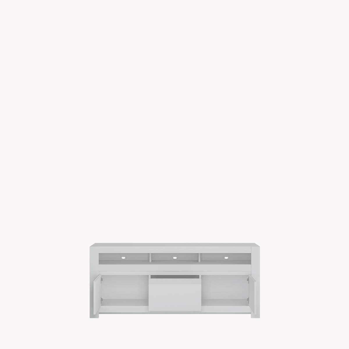 Komoda RTV z szufladą i półkami, biała, bez uchwytów