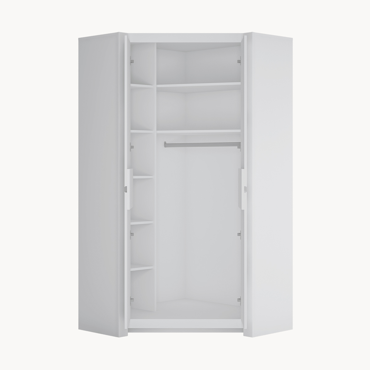 Szafa narożna, 2 drzwiowa, biała, bez uchwytów