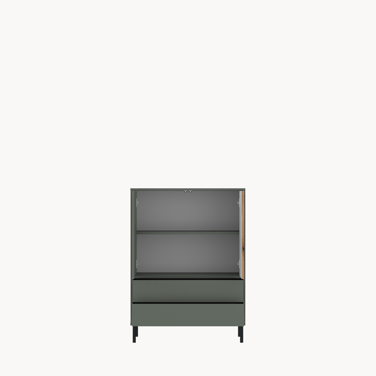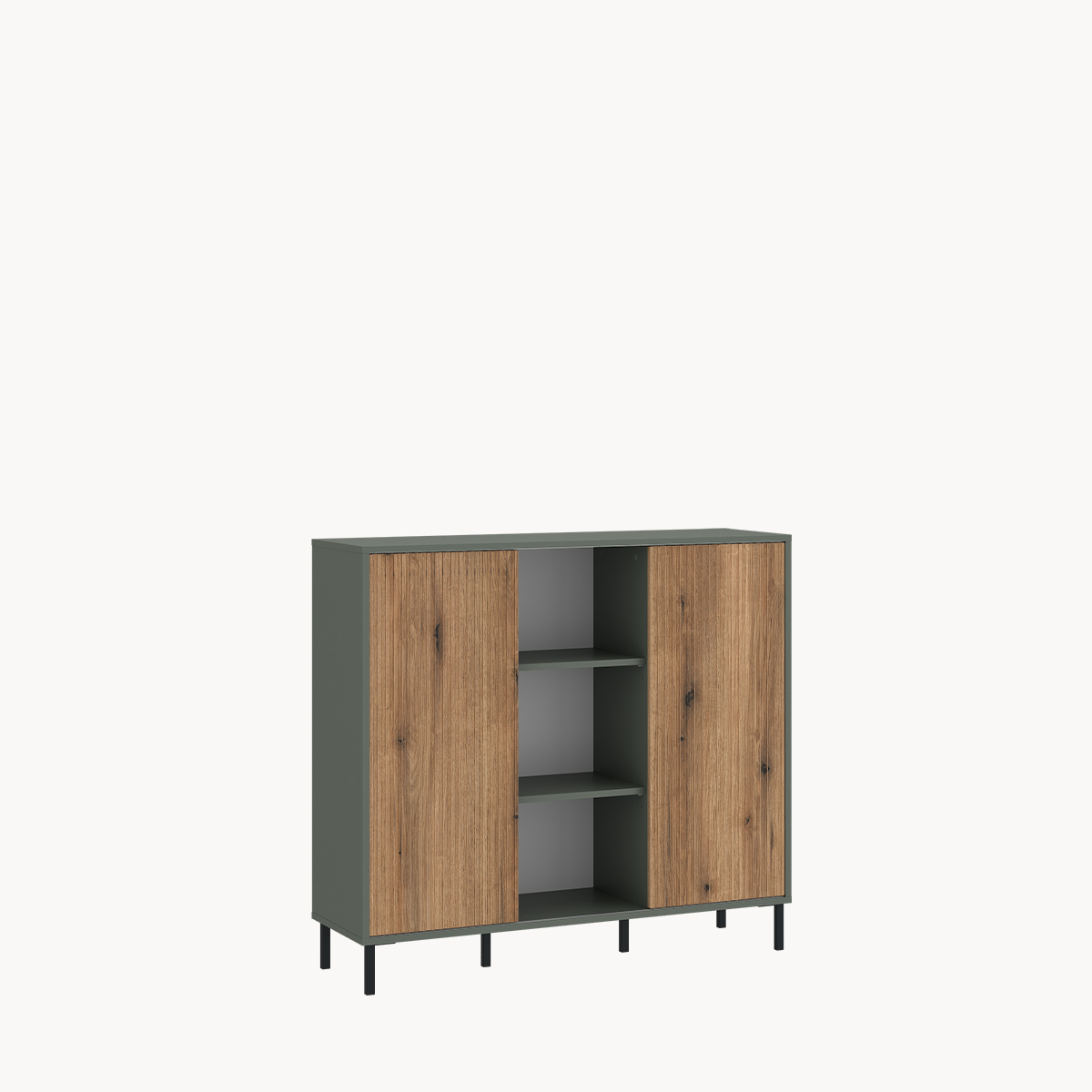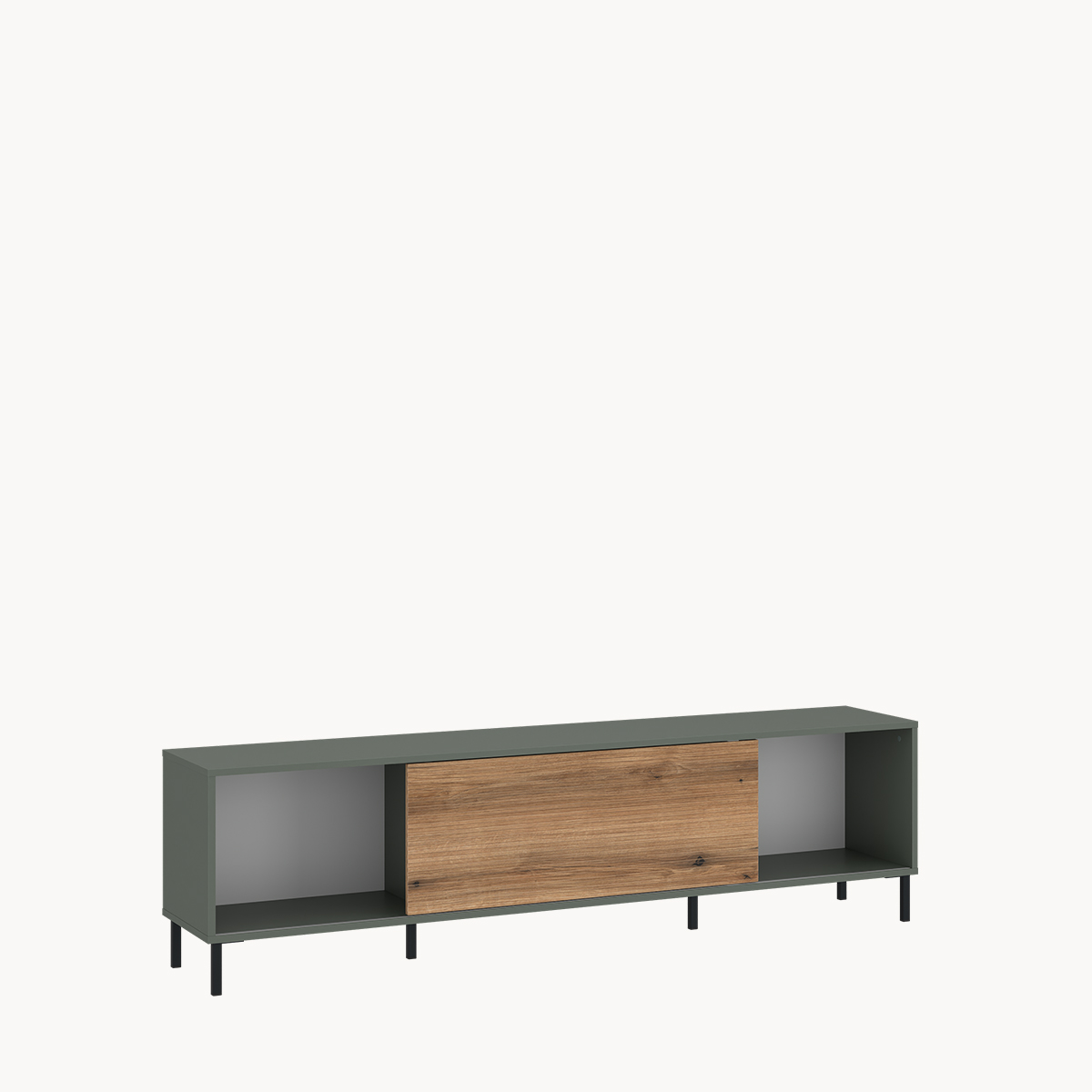 Komoda RTV z półkami, szarozielona, na metalowych nóżkach