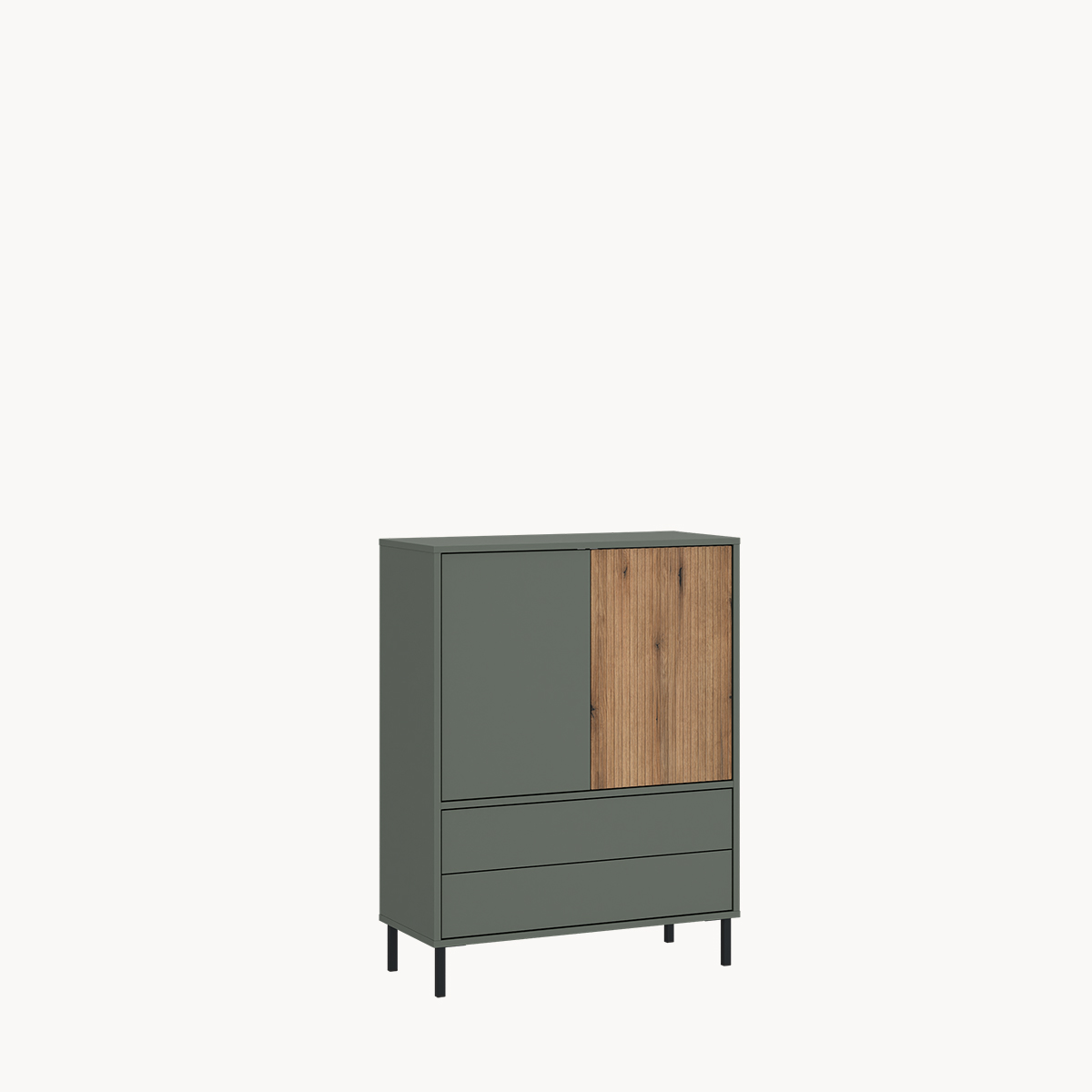 Komoda z szufladami, szarozielona, na metalowych nogach