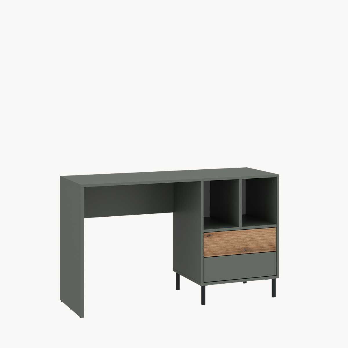 Biurko z szufladami, szarozielone, na metalowych nogach