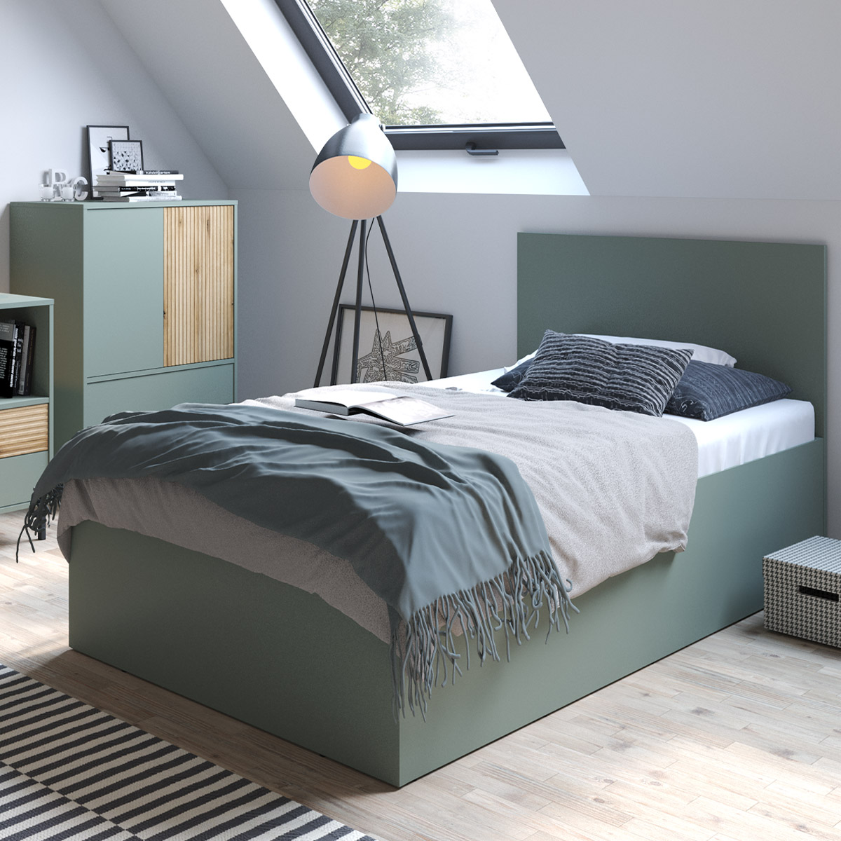 Łóżko jednoosobowe 90×200 cm, szarozielone